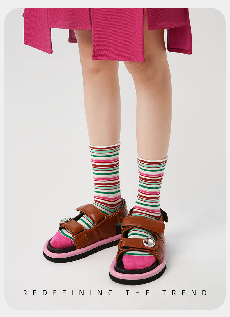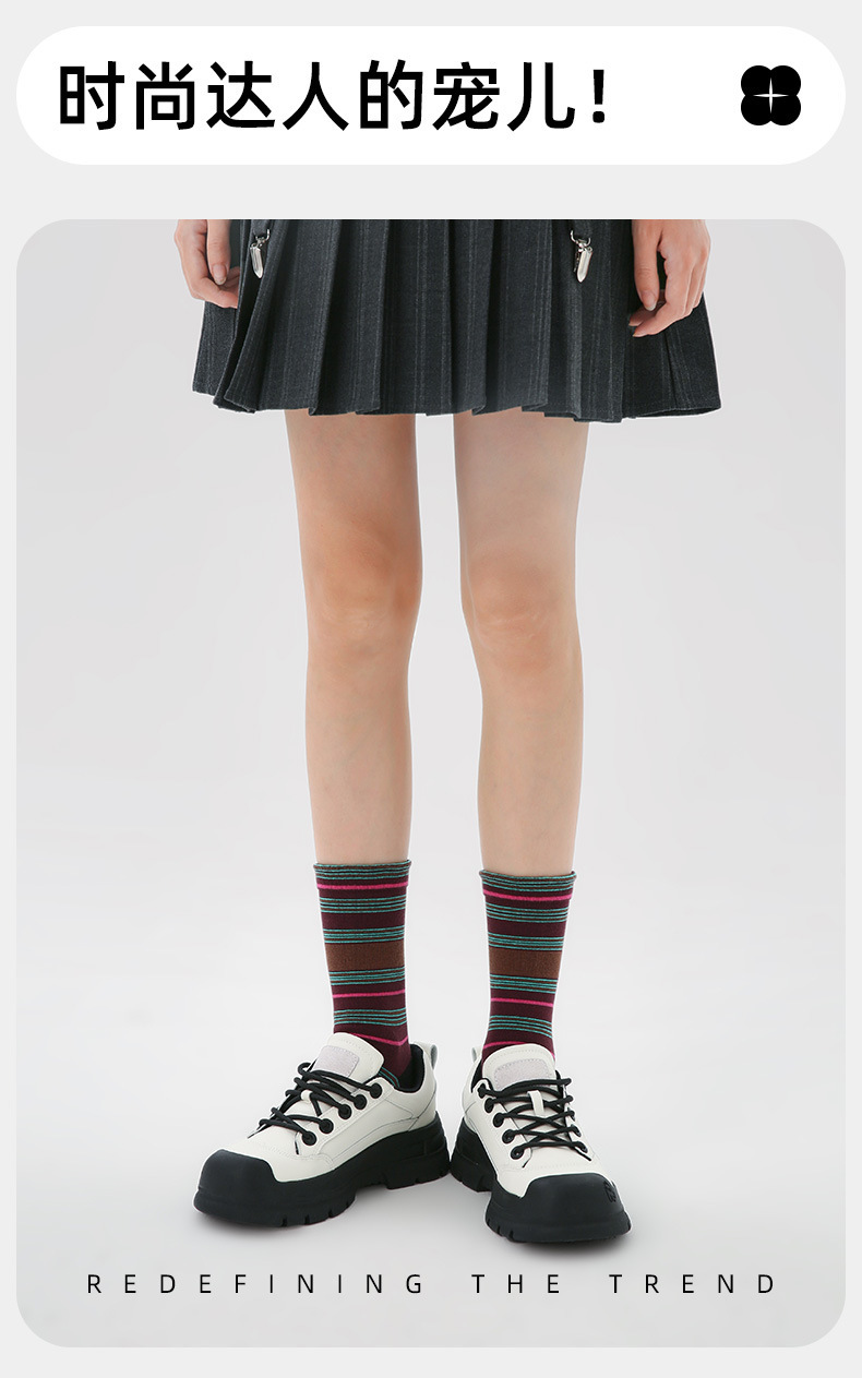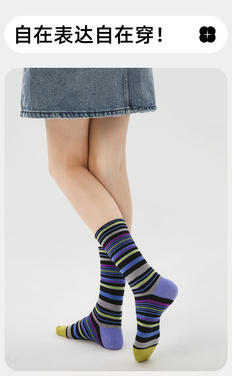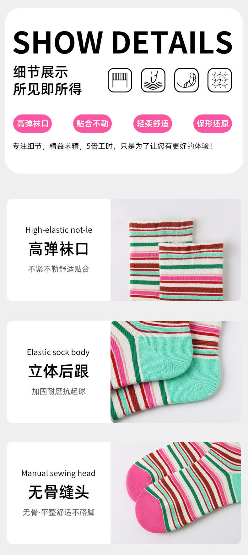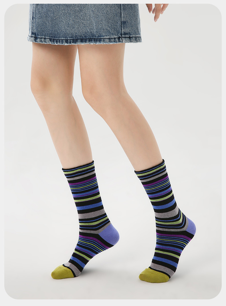 3 쌍-르네상스 오리지널 디자인 여성 양말 간단한 줄무늬 대비 색상 콤비네이션 코튼 미드 튜브 양말 여성용 선물 상자 양말스토어 가기