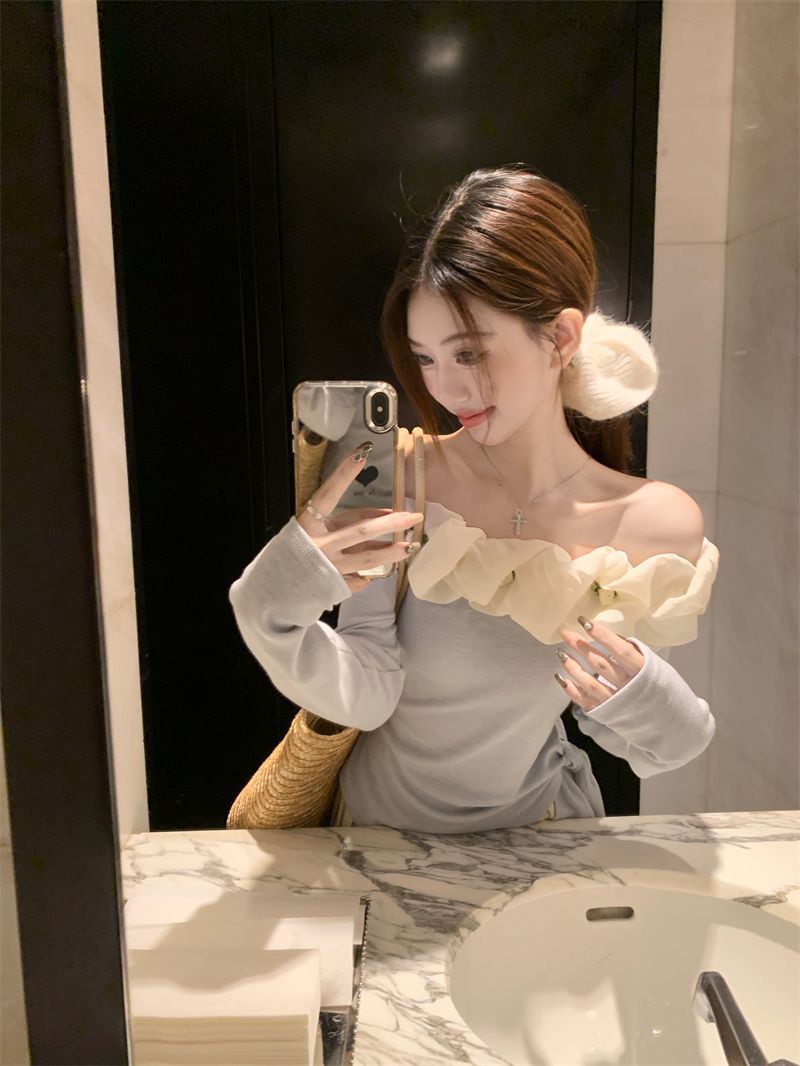 순수한 욕망 스타일 꽃 원라인 칼라 불규칙한 스트랩 티셔츠 여성용 와이드 레그 바닥 길이 바지 2025 이른 봄 새로운 투피스 세트스토어 가기