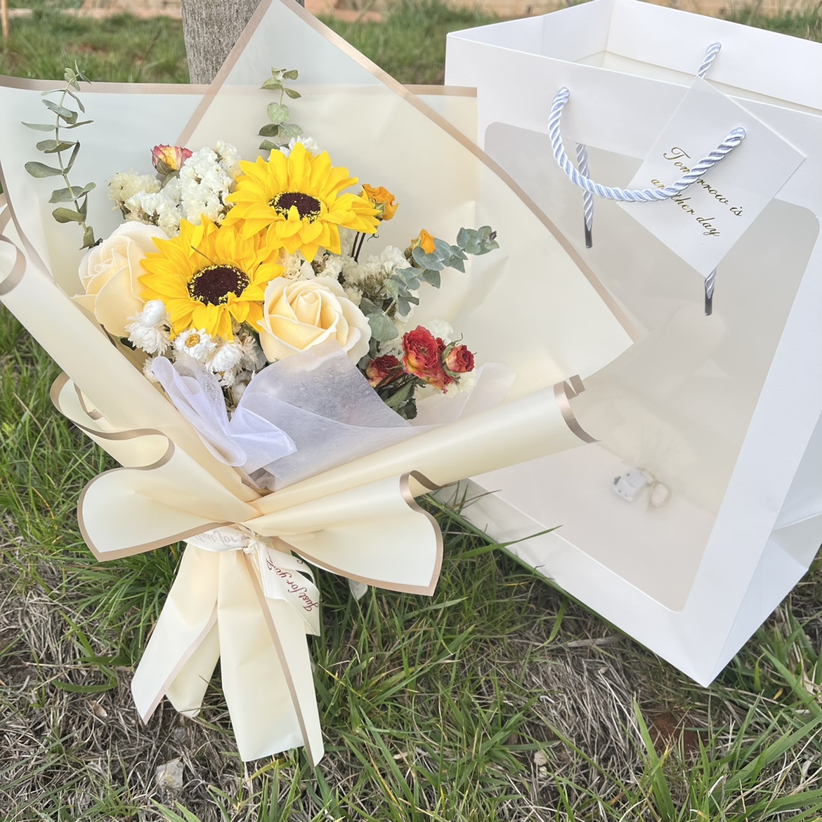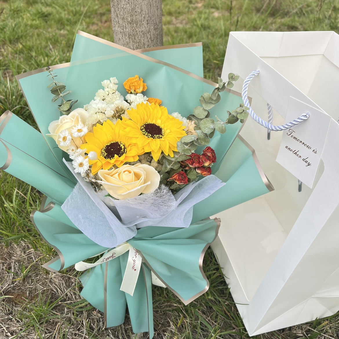 선물 상자 믹스 앤 매치 말린 꽃 꽃다발 장미 비누 꽃 해바라기 인공 꽃 남성과 여성 친구 발렌타인 어머니의 날스토어 가기