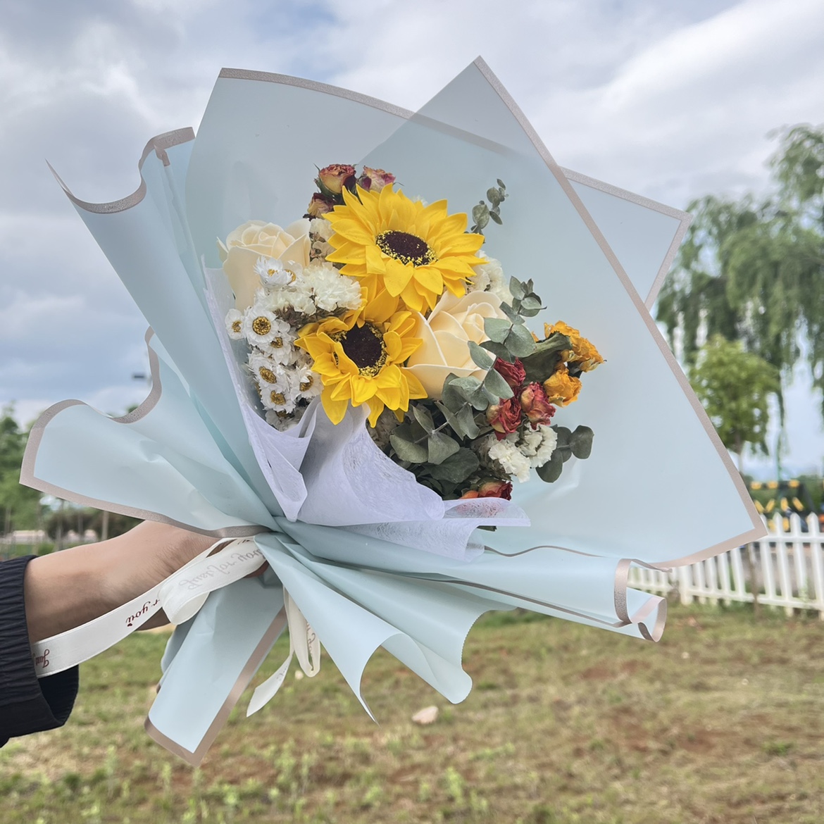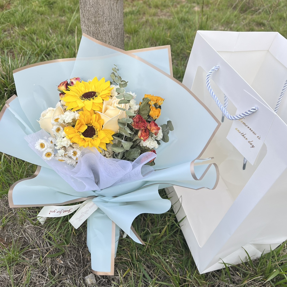 • 솔트 골드 테두리 하늘색 꽃다발
