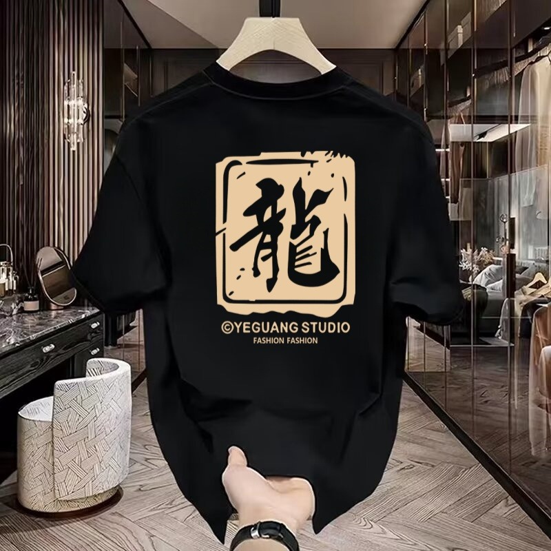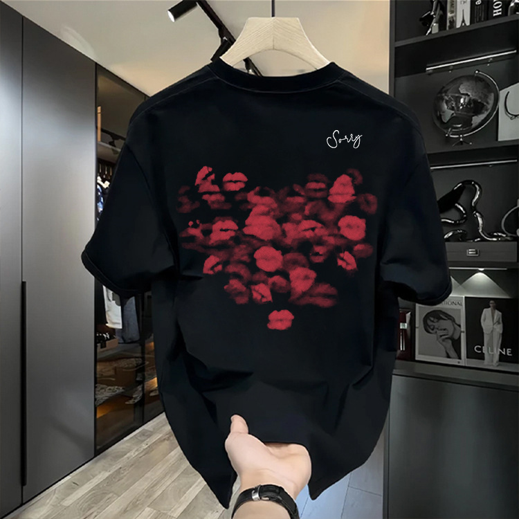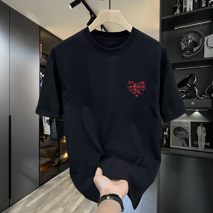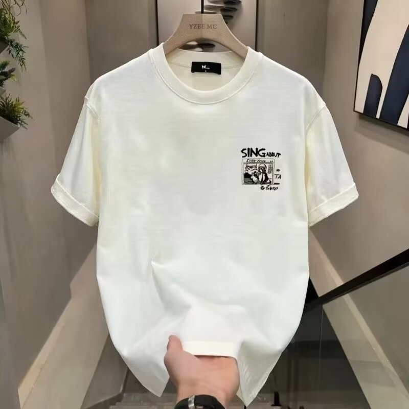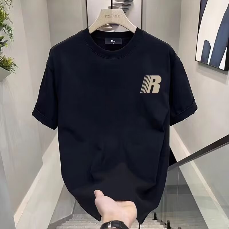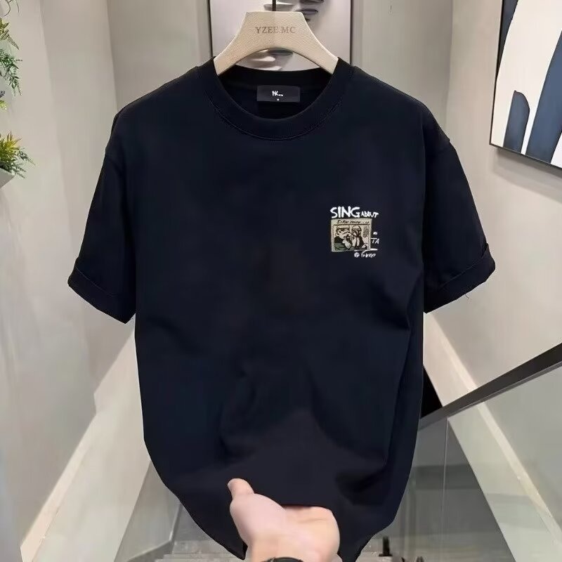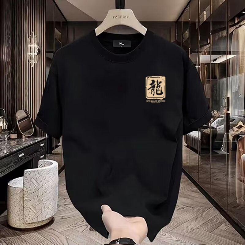 헤비 코튼 반팔 티셔츠 남성용 트렌디 브랜드 인 루즈 캐주얼 플러스 사이즈 라운드 넥 프린트 티셔츠 홍콩 스타일 트렌디 탑스토어 가기