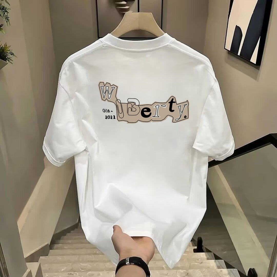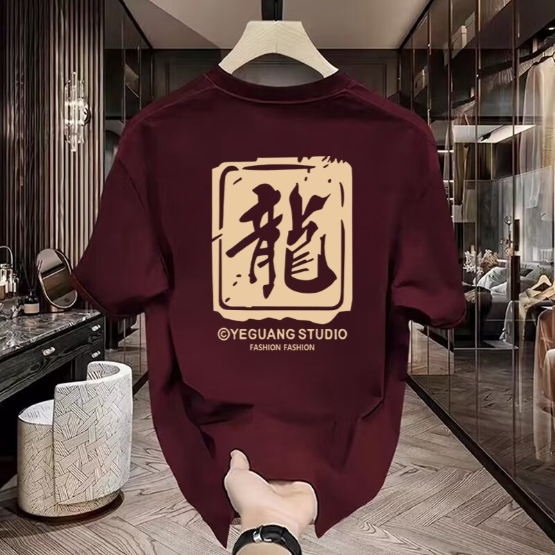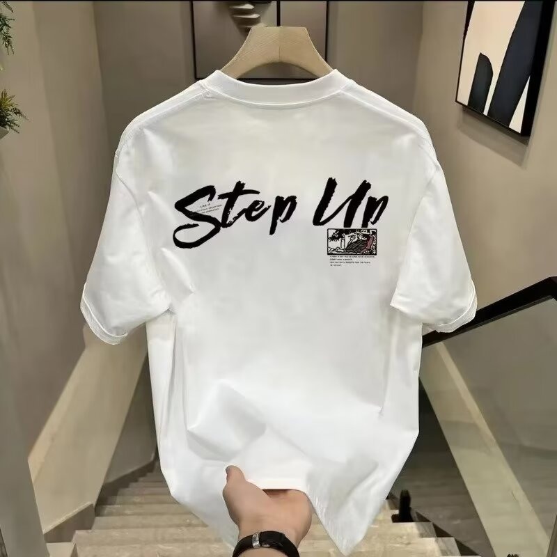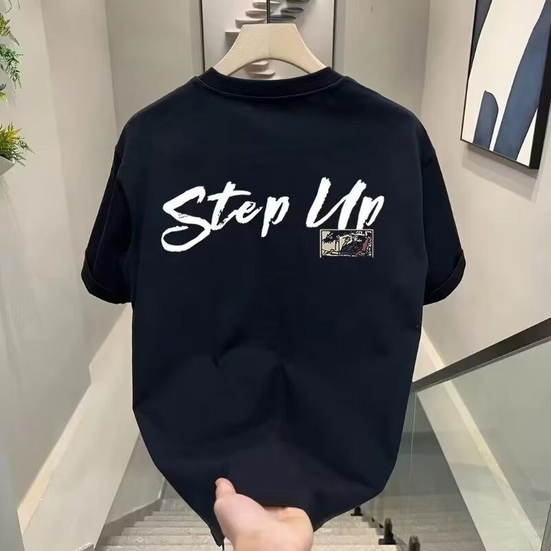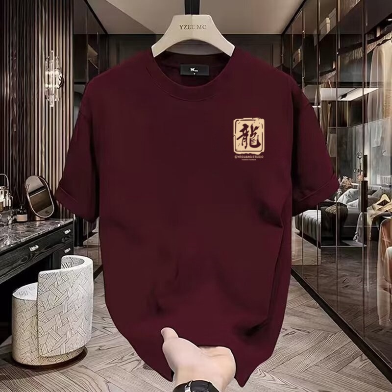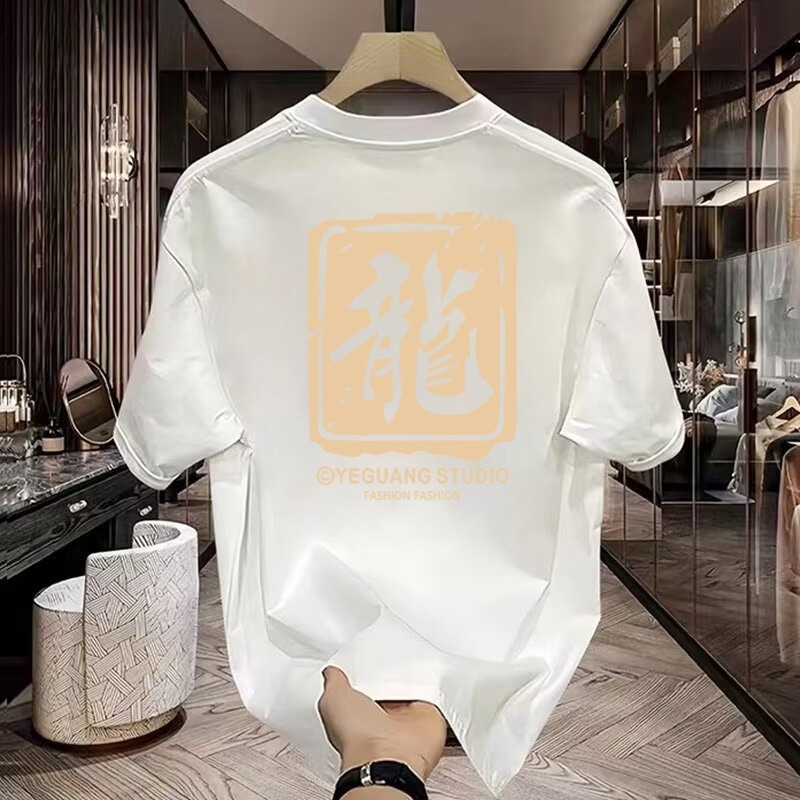 헤비 코튼 반팔 티셔츠 남성용 트렌디 브랜드 인 루즈 캐주얼 플러스 사이즈 라운드 넥 프린트 티셔츠 홍콩 스타일 트렌디 탑스토어 가기