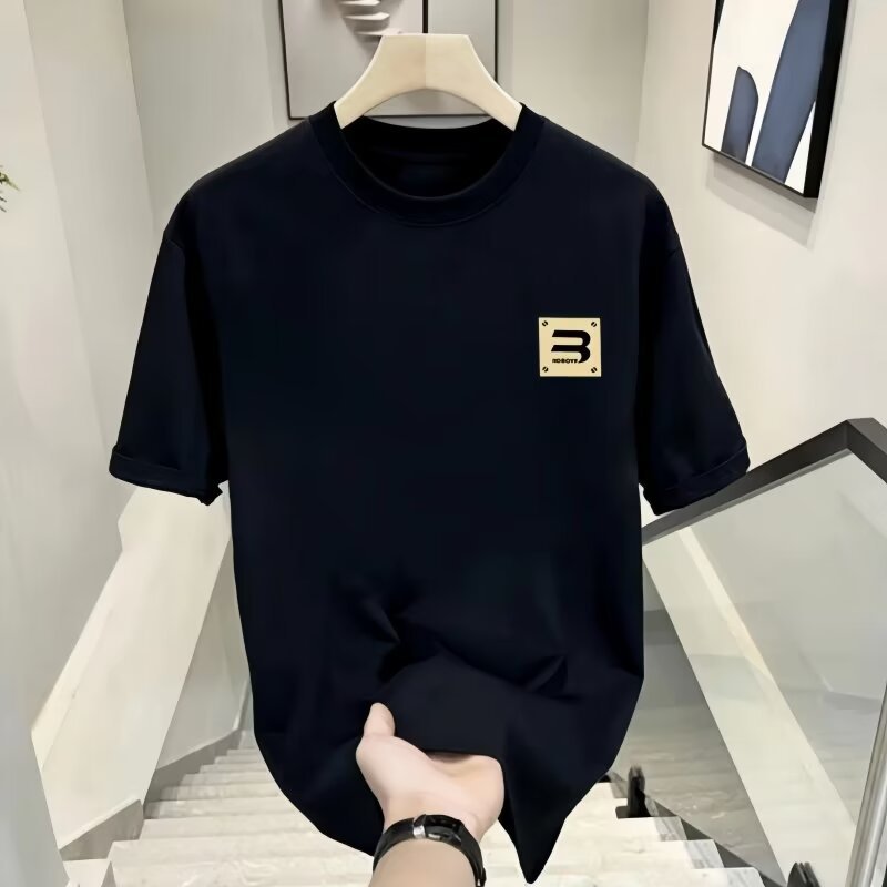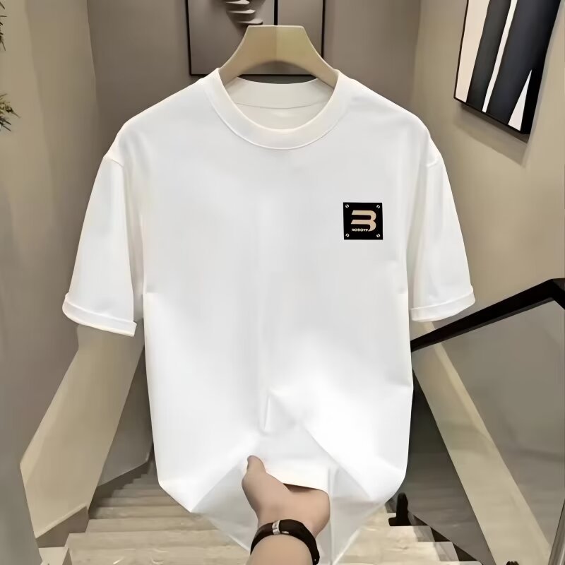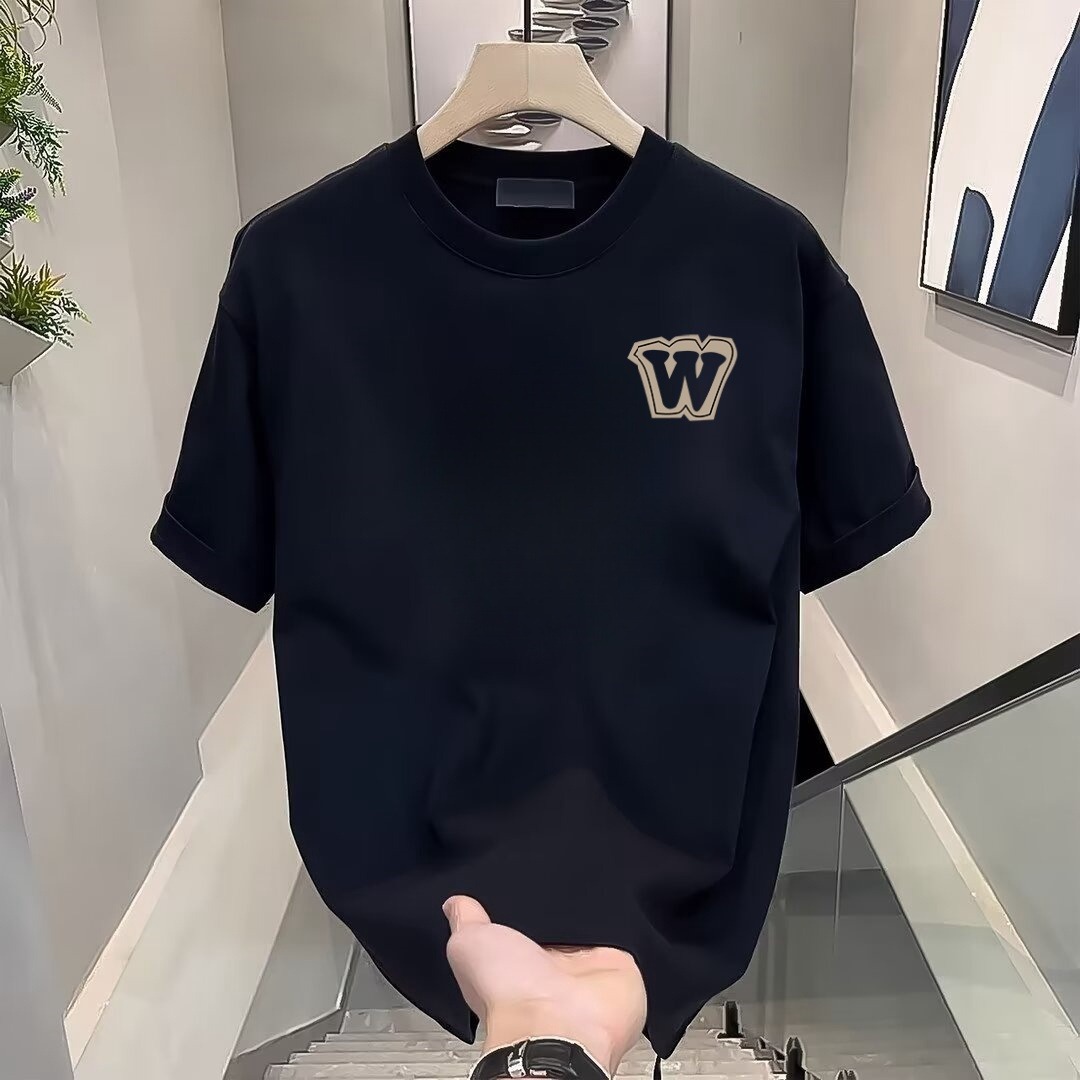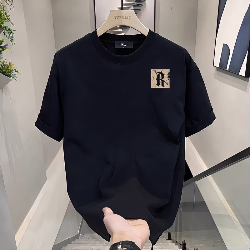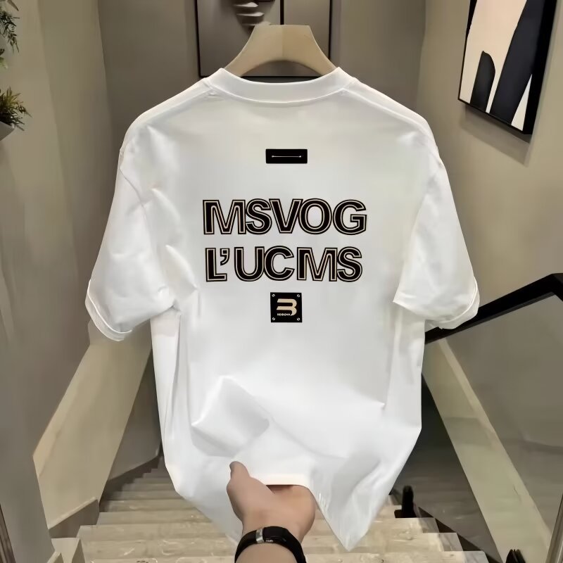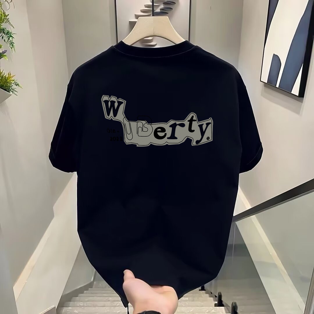 헤비 코튼 반팔 티셔츠 남성용 트렌디 브랜드 인 루즈 캐주얼 플러스 사이즈 라운드 넥 프린트 티셔츠 홍콩 스타일 트렌디 탑스토어 가기