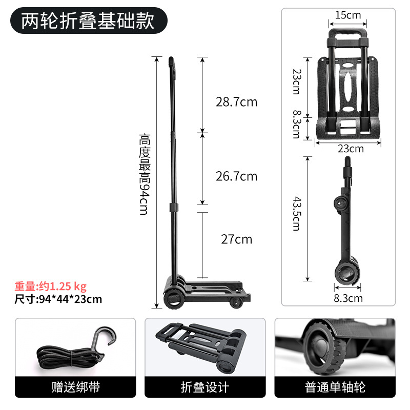 • 표준 모델 [두꺼운 내마모성 두 바퀴 + 접이식 고급 철제 본체] 내하중 약 50kg - 프리 타이 로프*2
