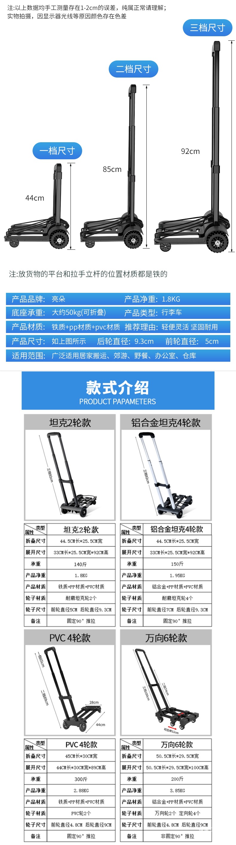 • 럭셔리 모델 [매우 두꺼운 내마모성 탱크 4륜 + 접이식 알루미늄 합금 본체] 내하중 약 90kg - 프리 바인딩 로프*2