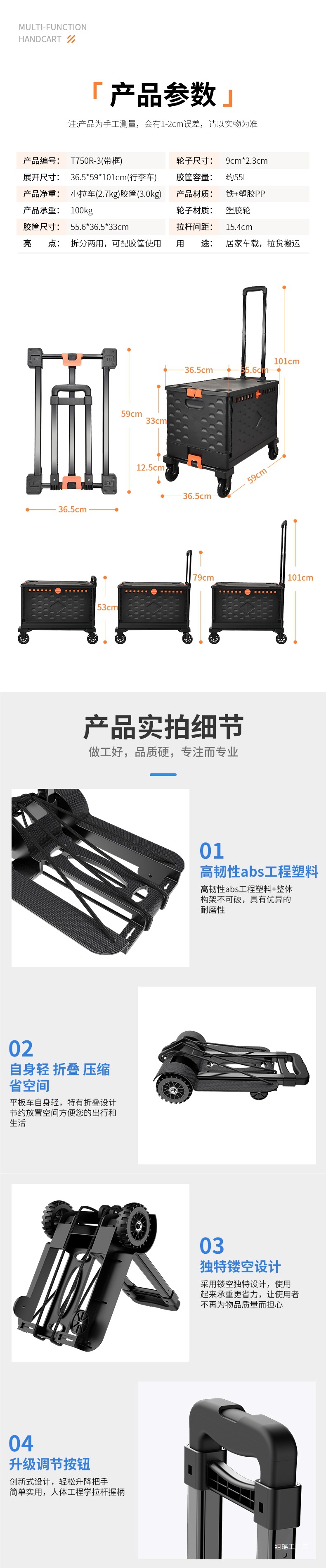 • 플래그십 모델 [매우 두꺼운 내마모성 탱크 4륜 + 접이식 고급 철제 본체] 내하중 약 75kg - 프리 바인딩 로프*2