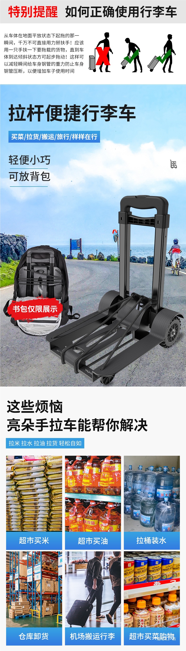 소형 카트 가정용 접이식 휴대용 소형 손수레 제품을 잡아 당기기 경량 핸드 카트 풀 로드 소형 트레일러 트롤리