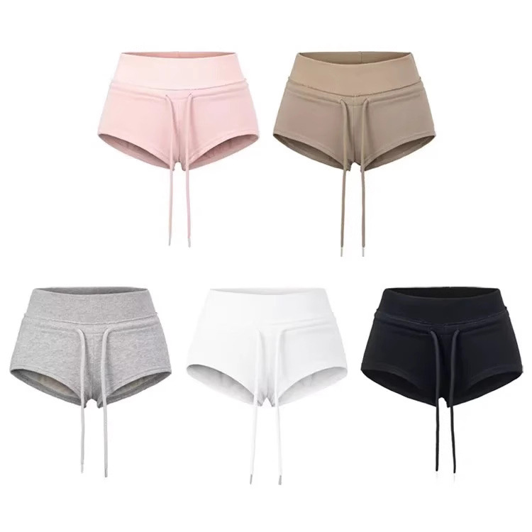 2025 새로운 여름 스포츠 핫 소녀 로우 웨이스트 드로우 스트링 반바지 여성 아메리칸 캐주얼 스타일 슬림 스트레이트 A 라인 핫 팬츠