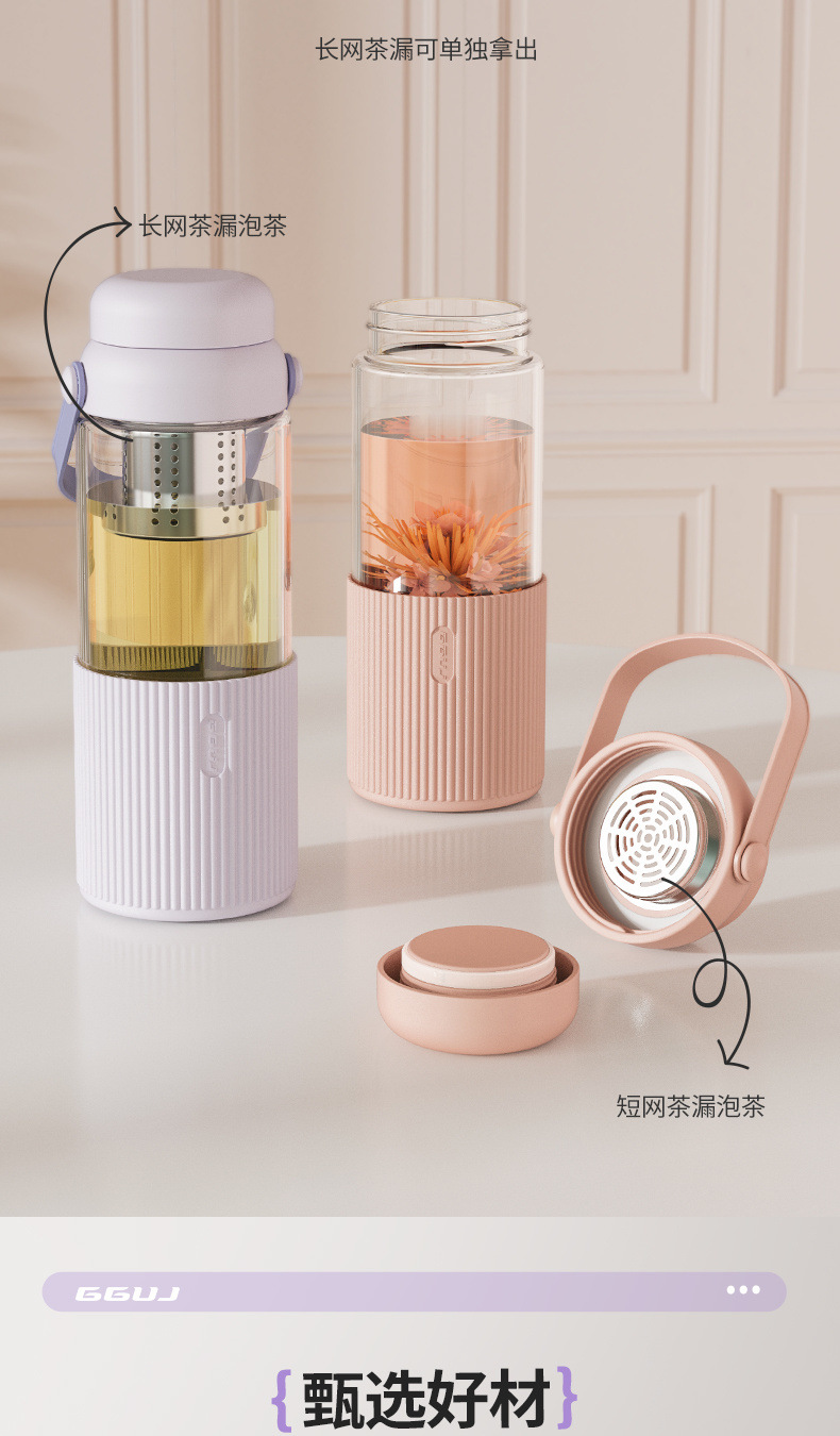 차와 물 분리 찻잔 유리 소녀의 고급스러운 물컵 새로운 2024 휴대용 남성용 사무실 커피