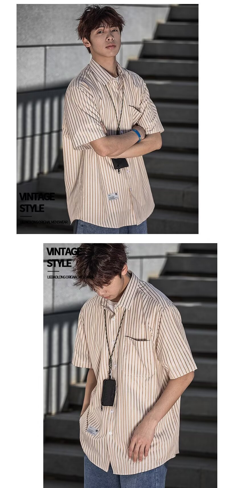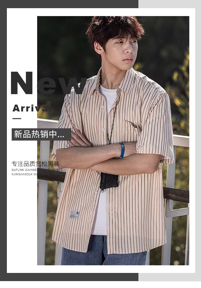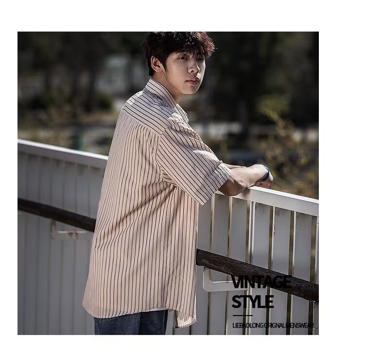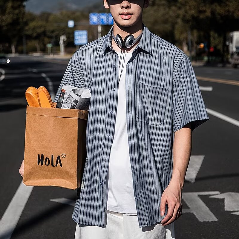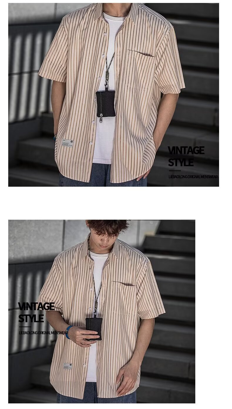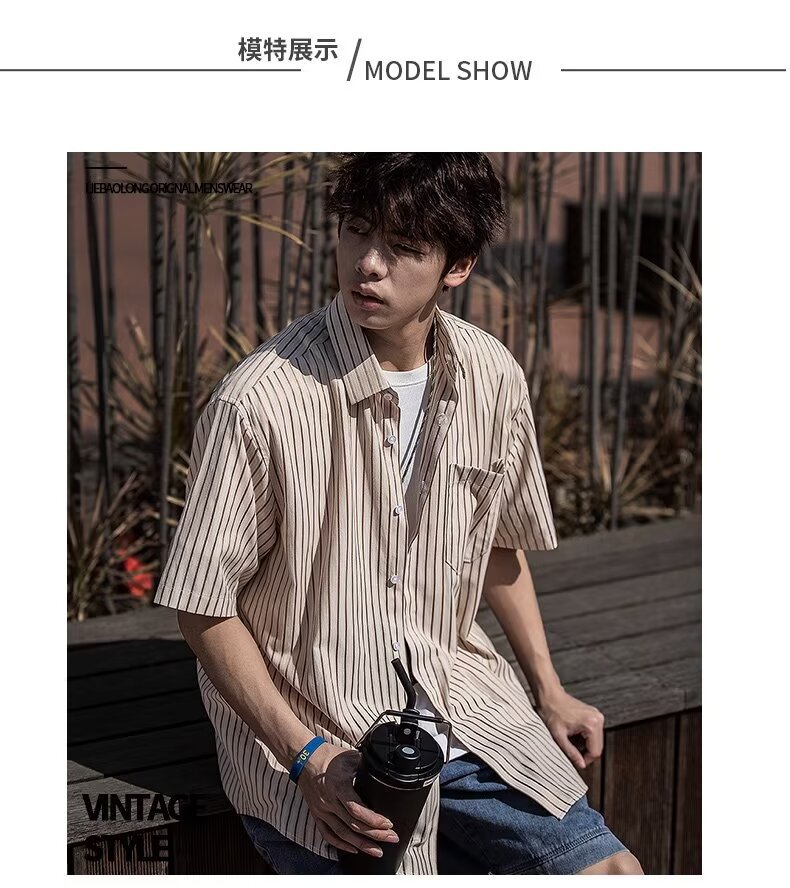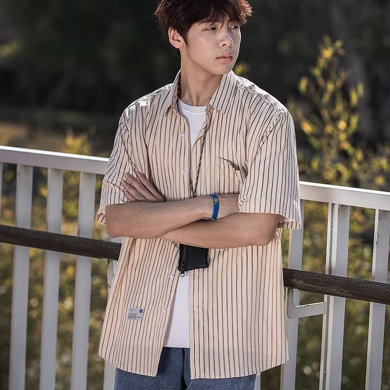 남성 클래식 스트라이프 셔츠 24 여름 패션 대비 색 스티치 남성 캐주얼 라펠 반팔 셔츠 한국 스타일스토어 가기
