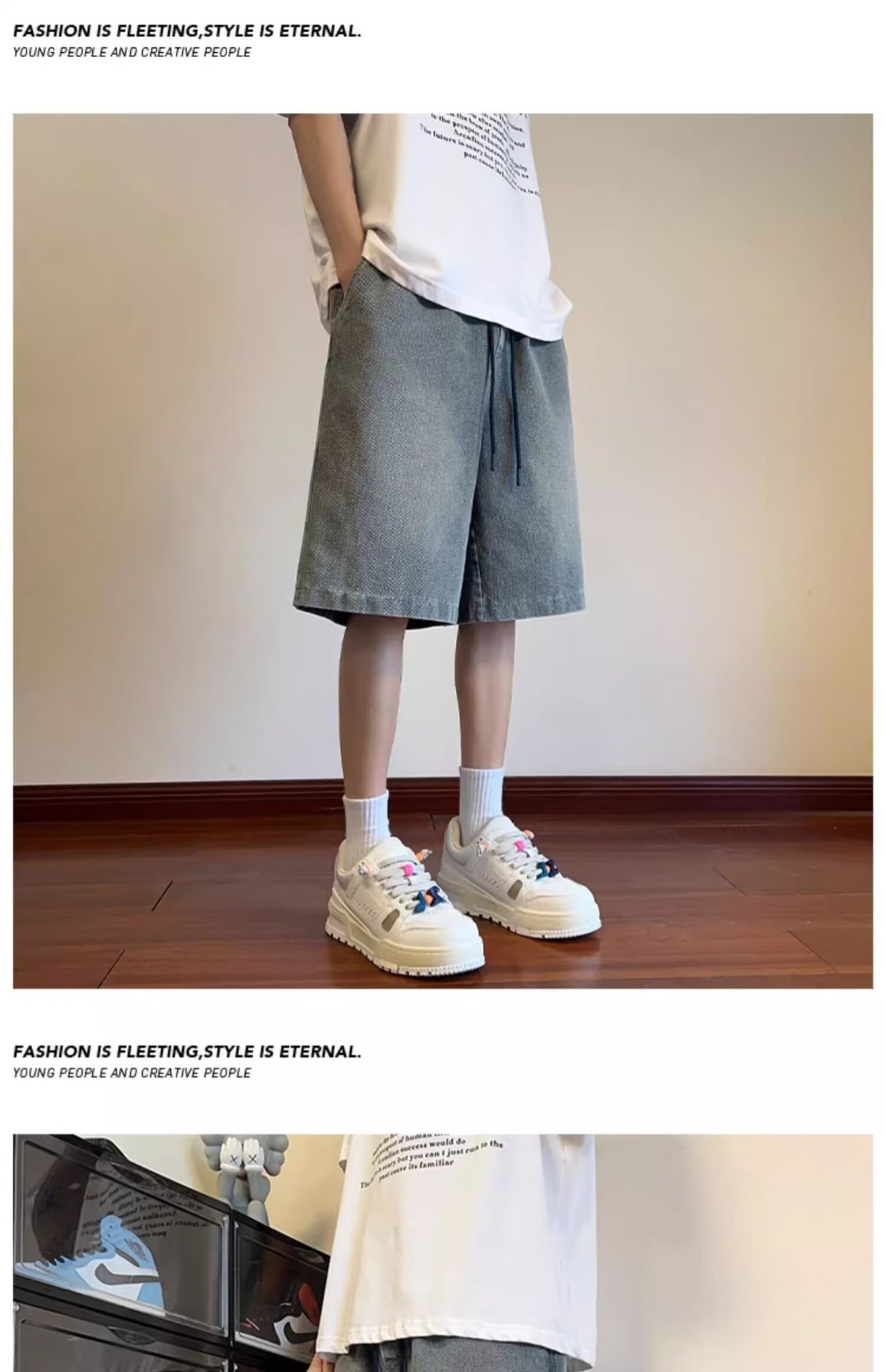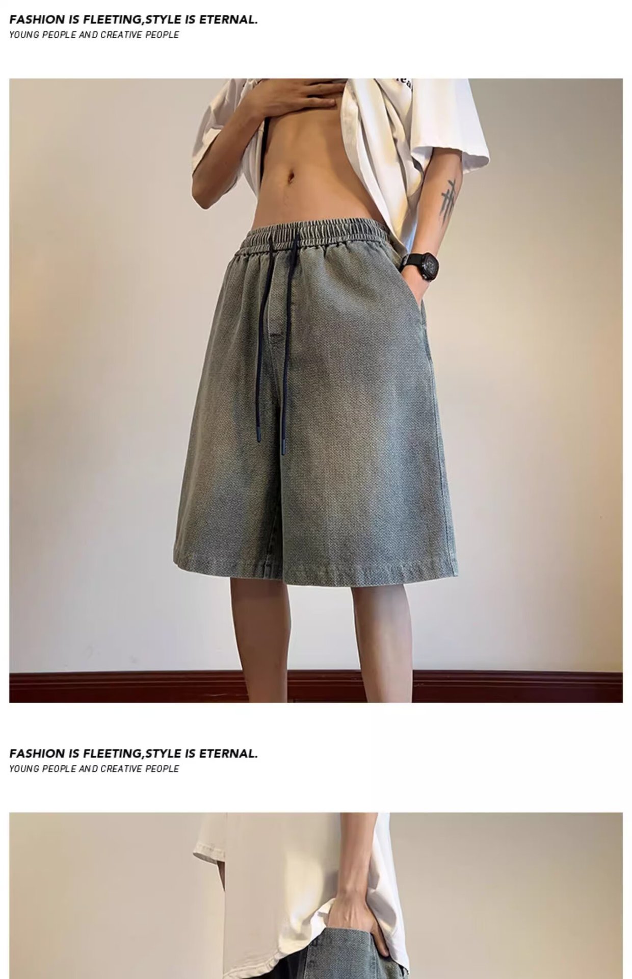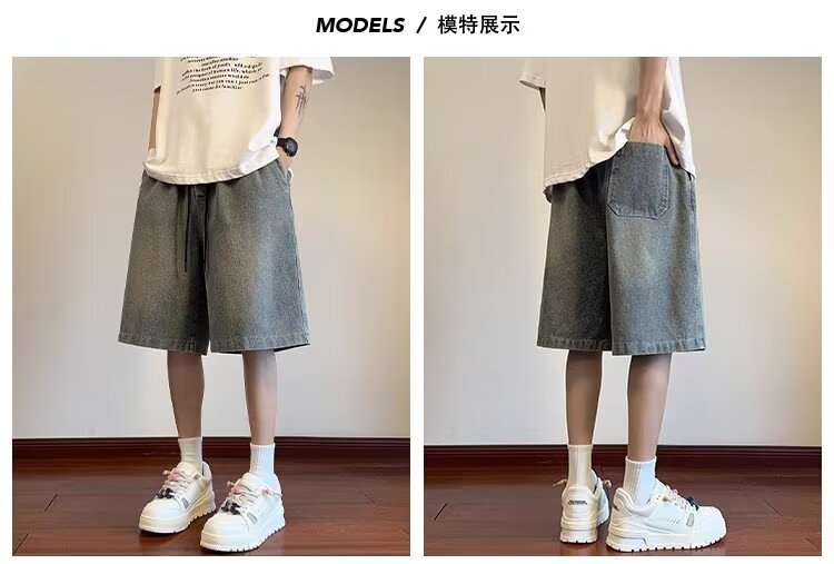 남성용 레트로 별이 빛나는 하늘 패턴 데님 반바지 여름 얇은 트렌디 브랜드 아메리칸 루즈 스트레이트 스트레치 소프트 데님 5부 바지스토어 가기