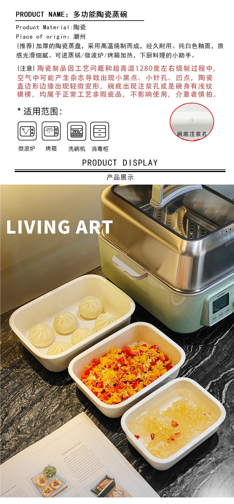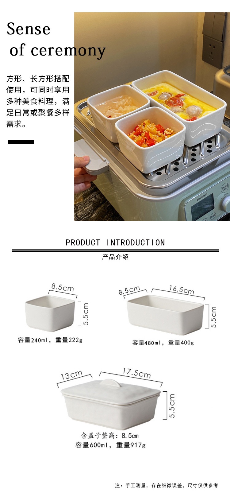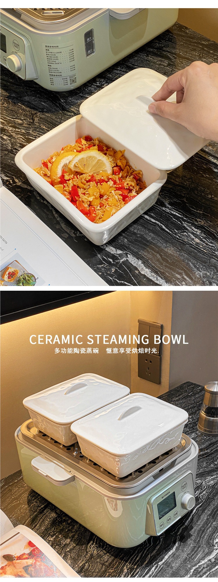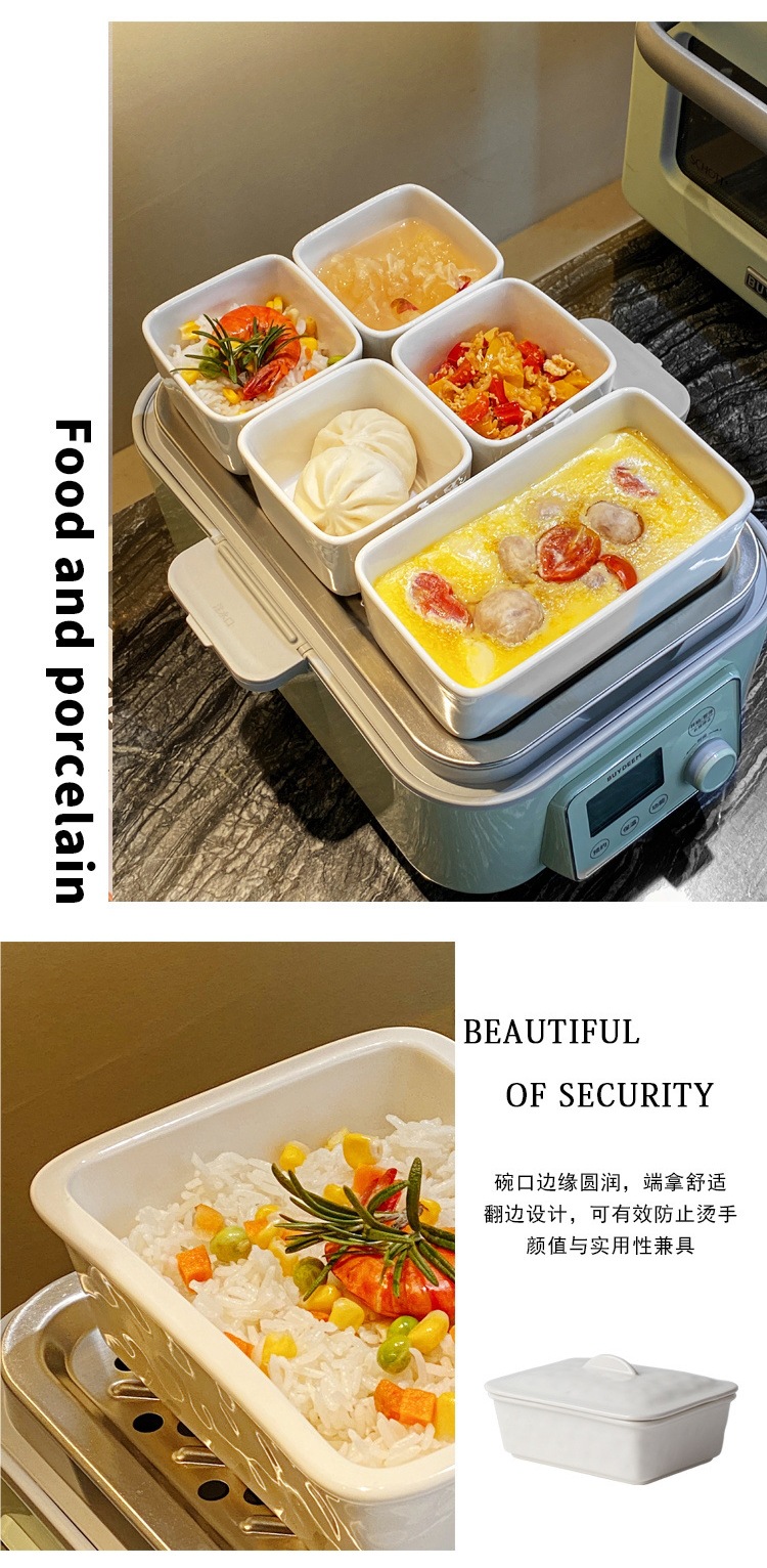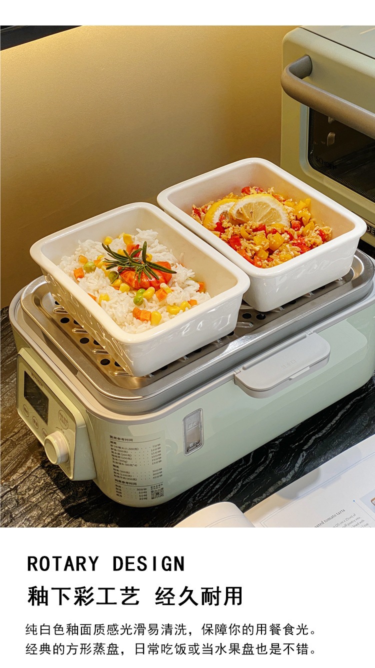 새로운 전기 찜통 오븐 찜 그릇 세라믹 사각형 그릇 가정용 직사각형 스낵 스낵 접시 스낵 계란찜 그릇 없음스토어 가기