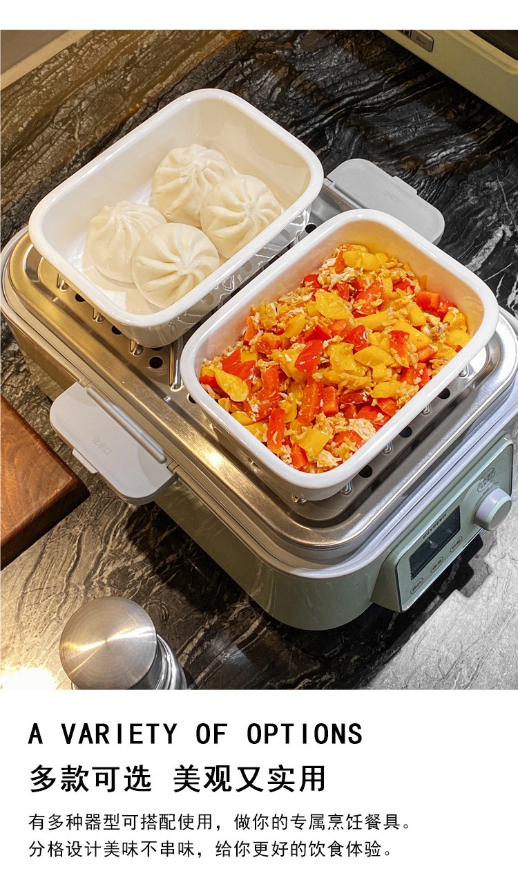 새로운 전기 찜통 오븐 찜 그릇 세라믹 사각형 그릇 가정용 직사각형 스낵 스낵 접시 스낵 계란찜 그릇 없음
