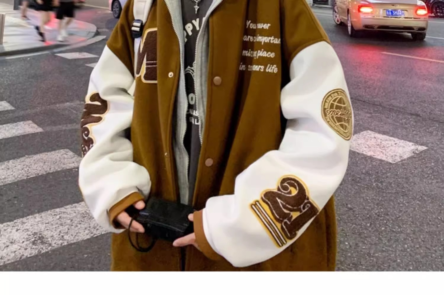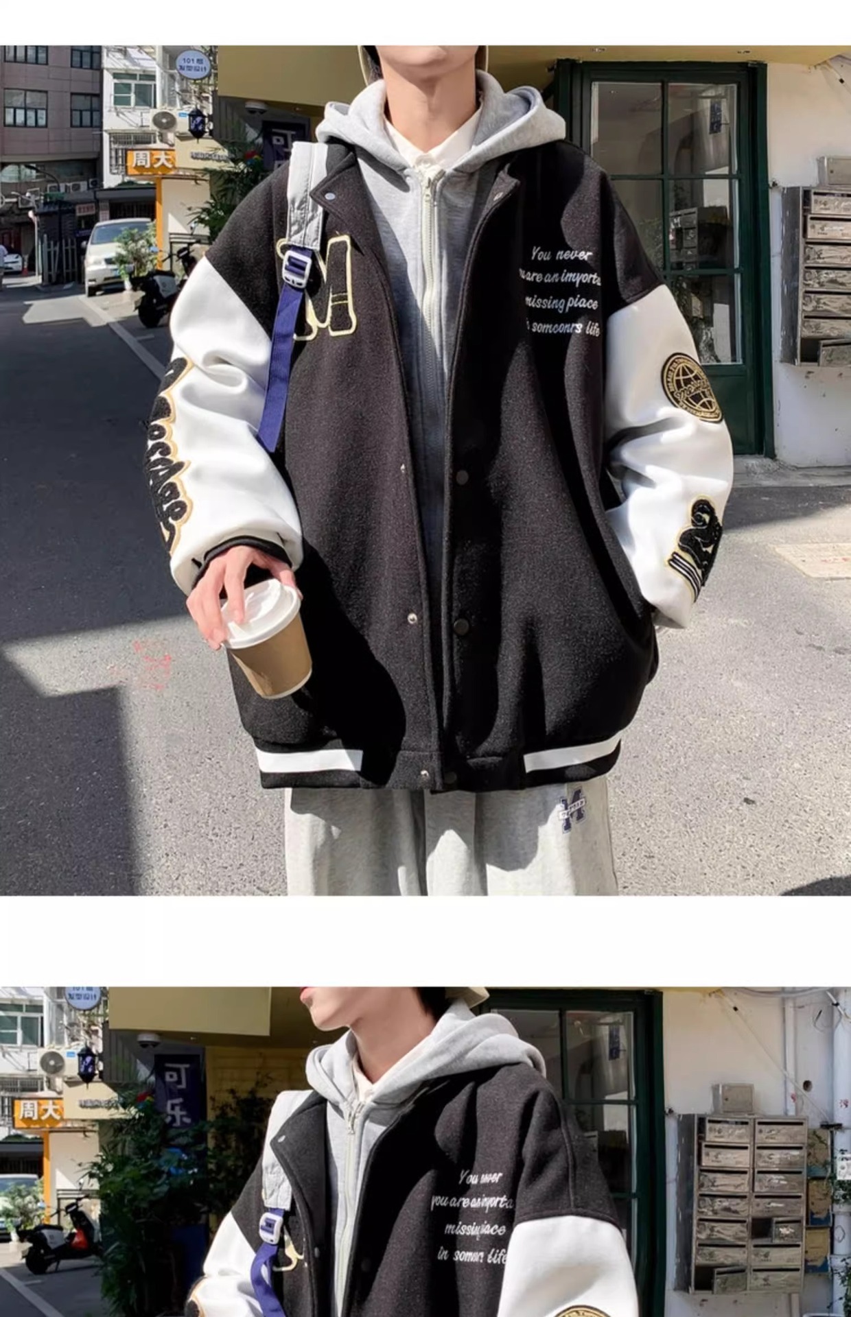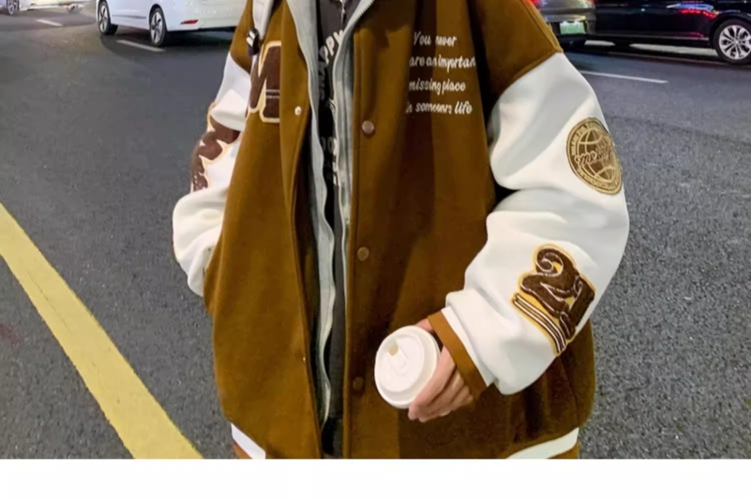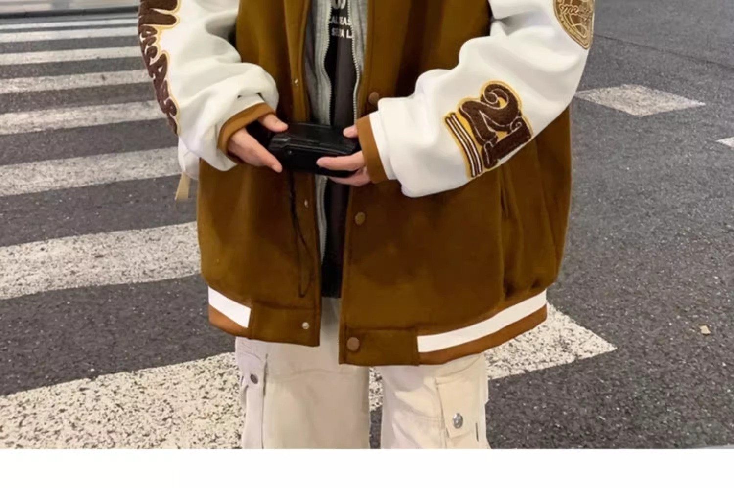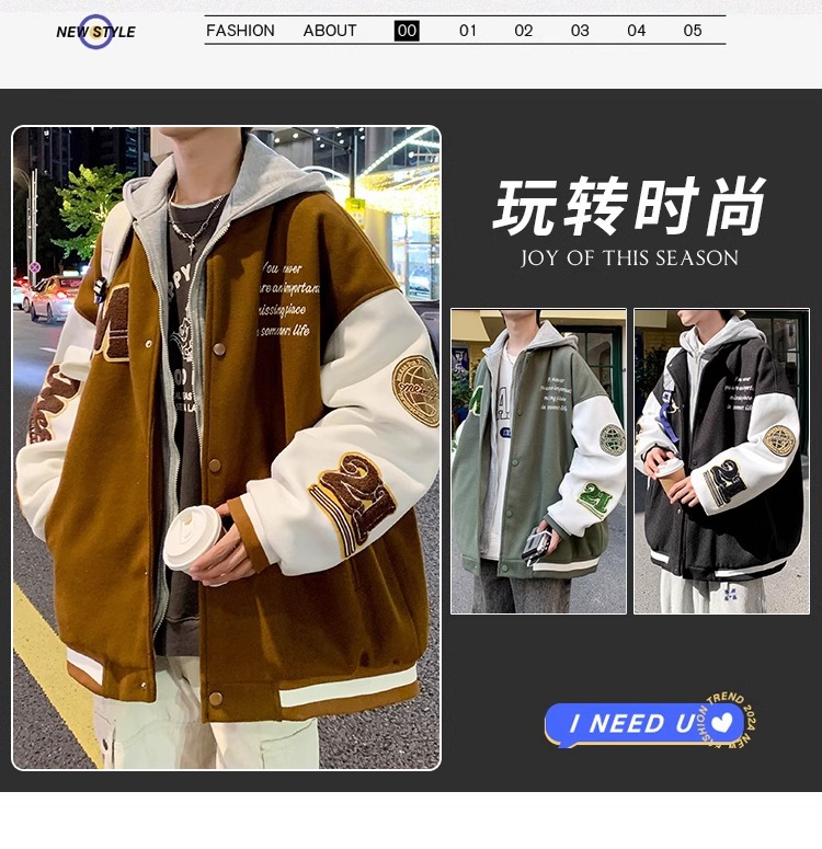 가짜 투피스 야구 유니폼 남자 코트 봄과 가을 2024 새로운 후드 자켓 미국 스타일 유행 브랜드 소년 커플 옷스토어 가기