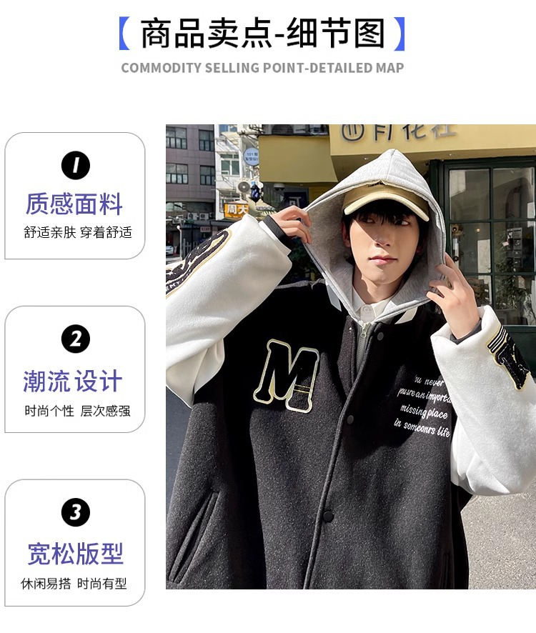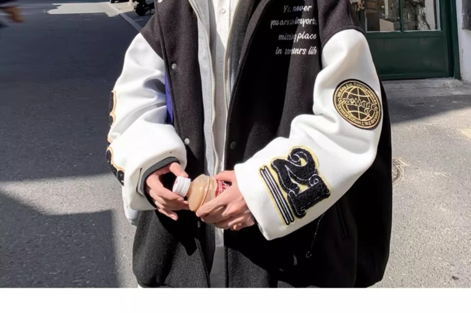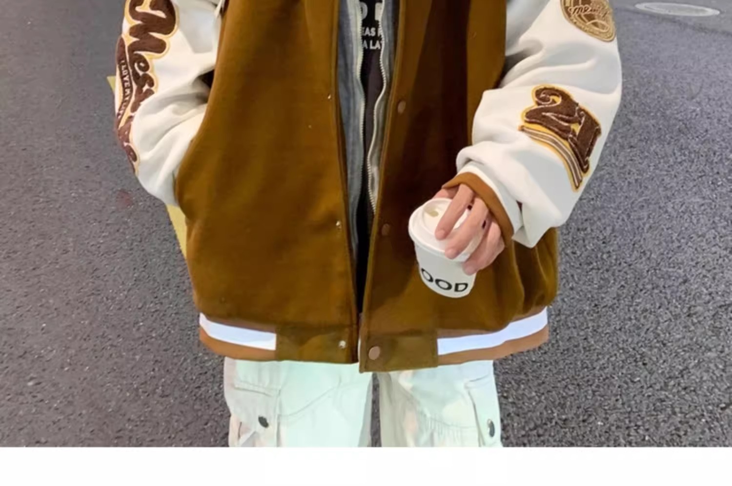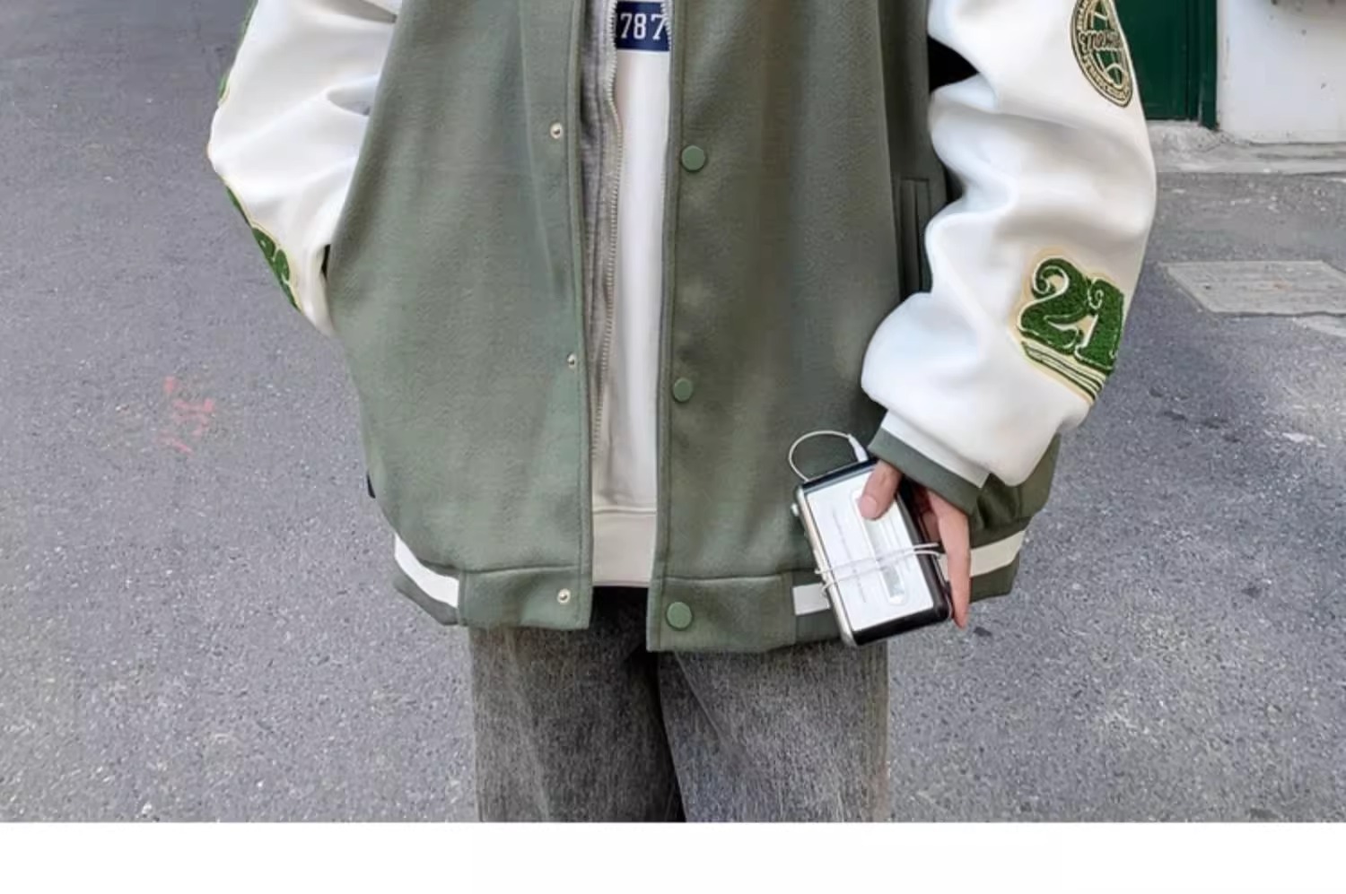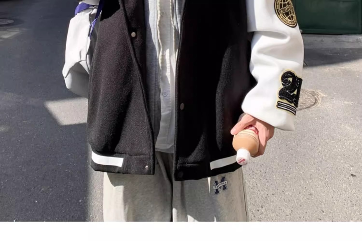 가짜 투피스 야구 유니폼 남자 코트 봄과 가을 2024 새로운 후드 자켓 미국 스타일 유행 브랜드 소년 커플 옷스토어 가기