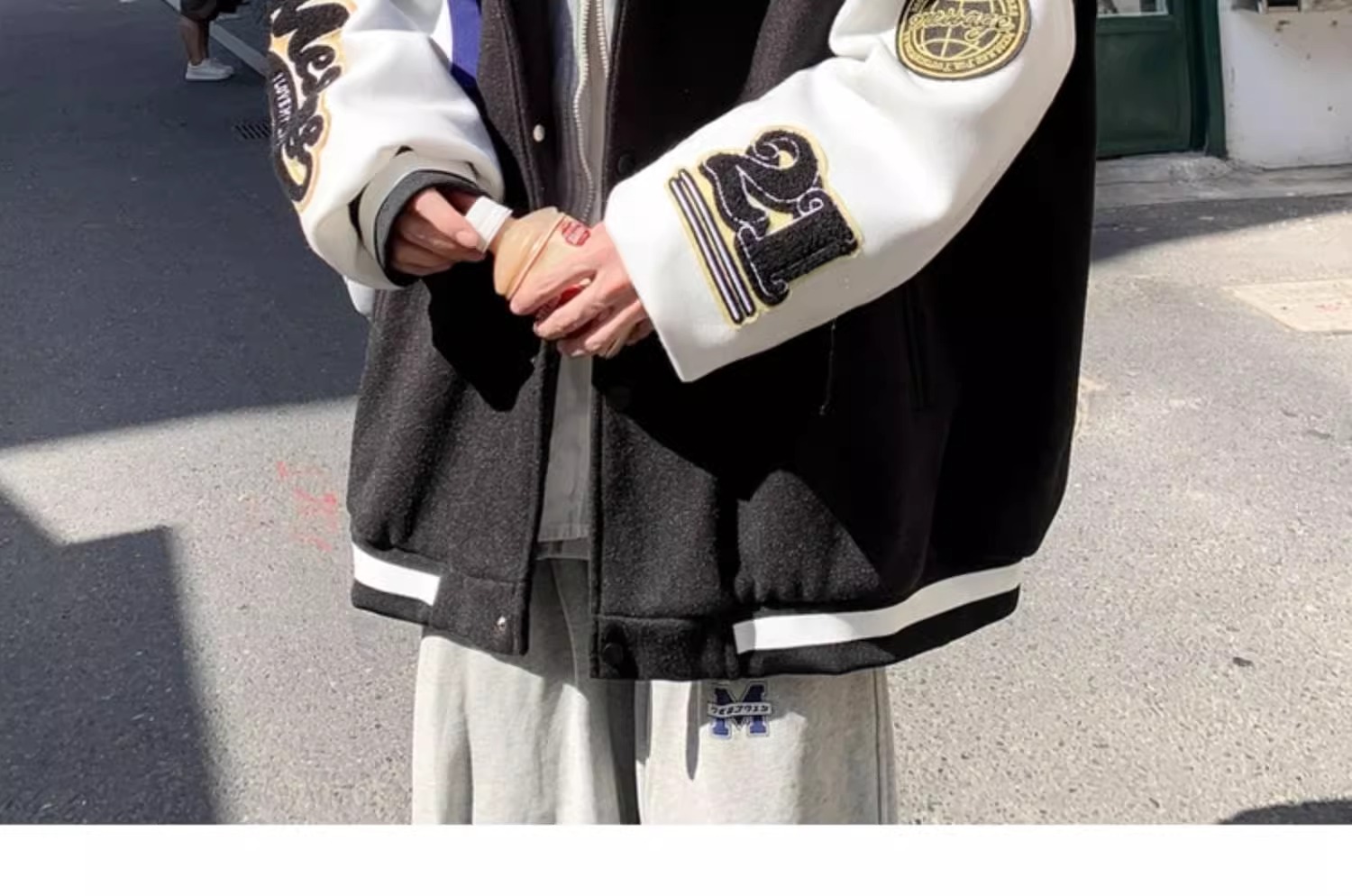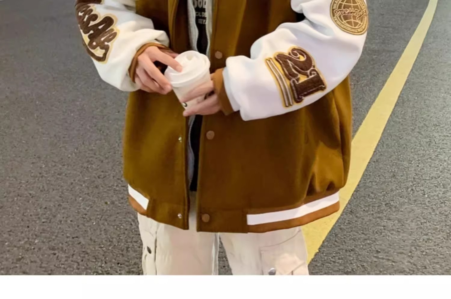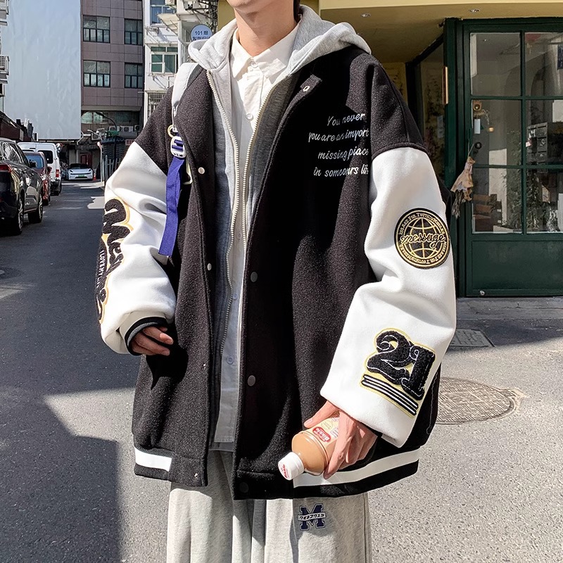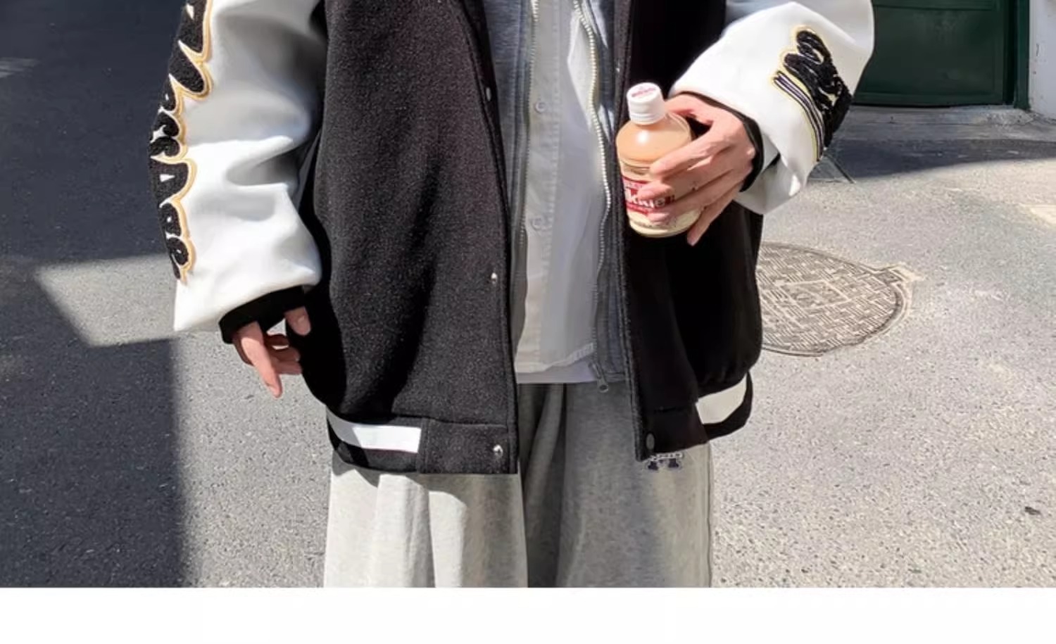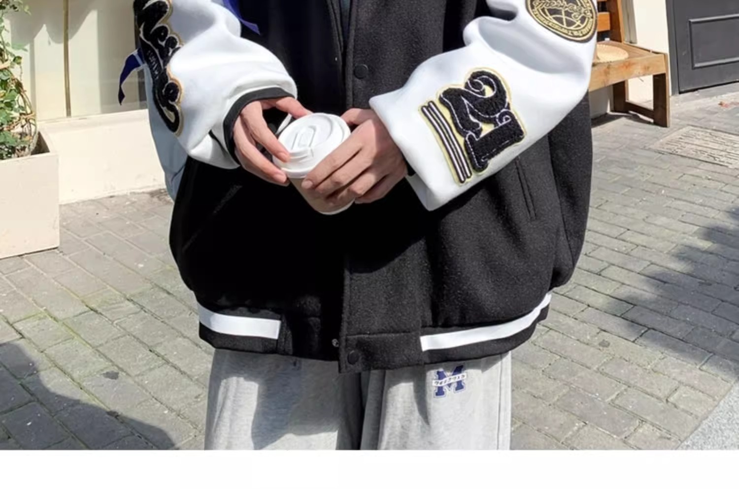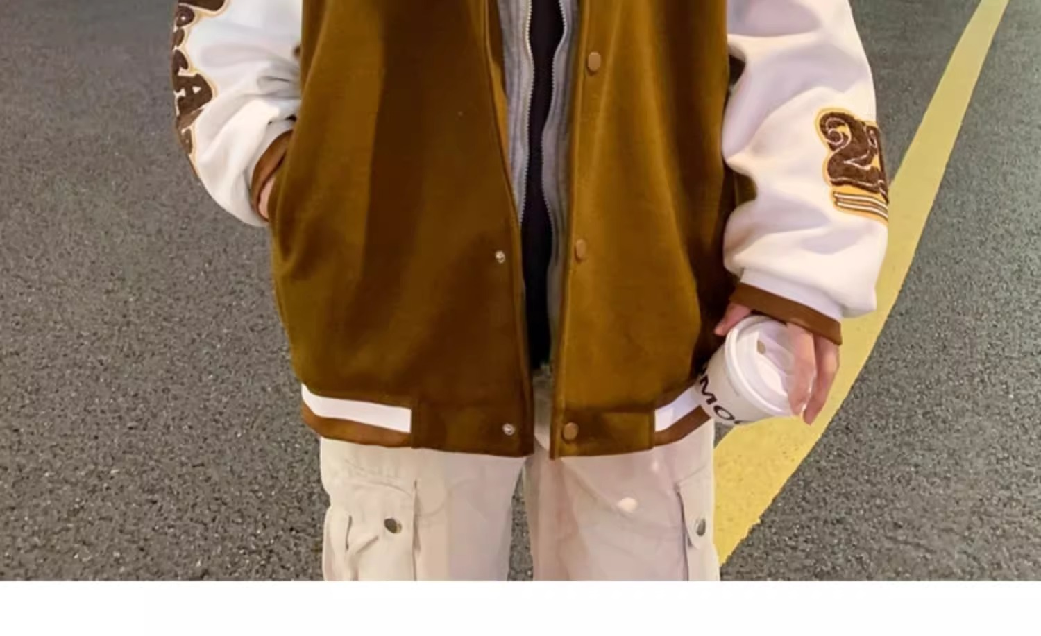 가짜 투피스 야구 유니폼 남자 코트 봄과 가을 2024 새로운 후드 자켓 미국 스타일 유행 브랜드 소년 커플 옷스토어 가기