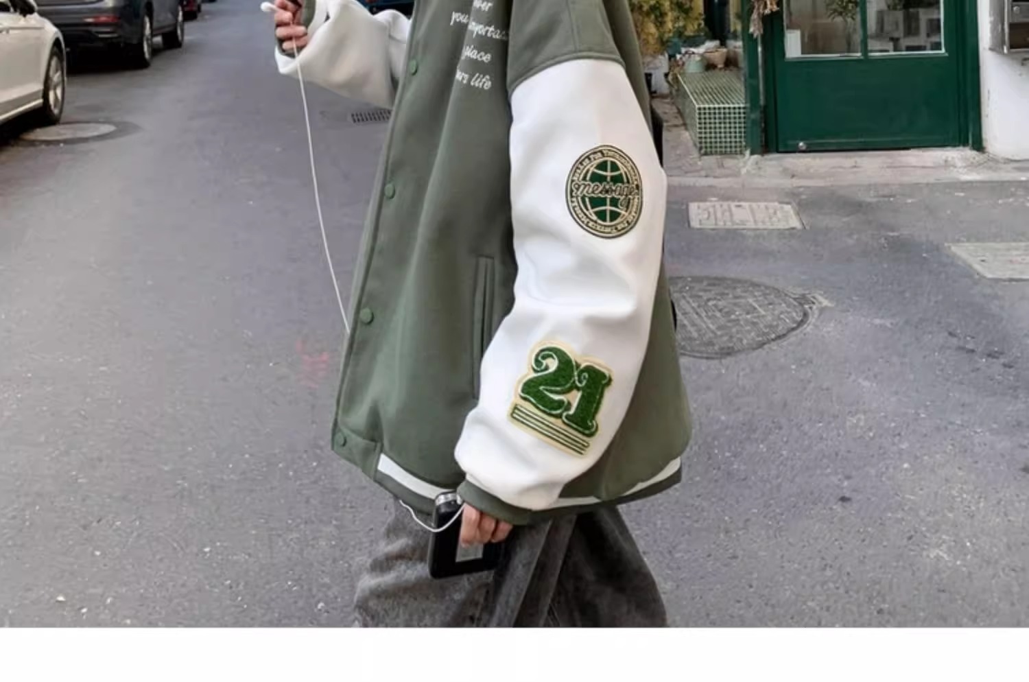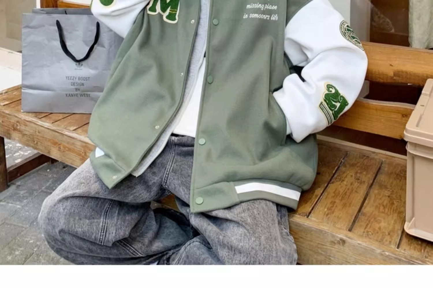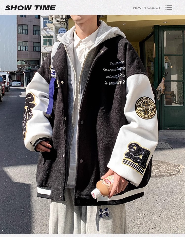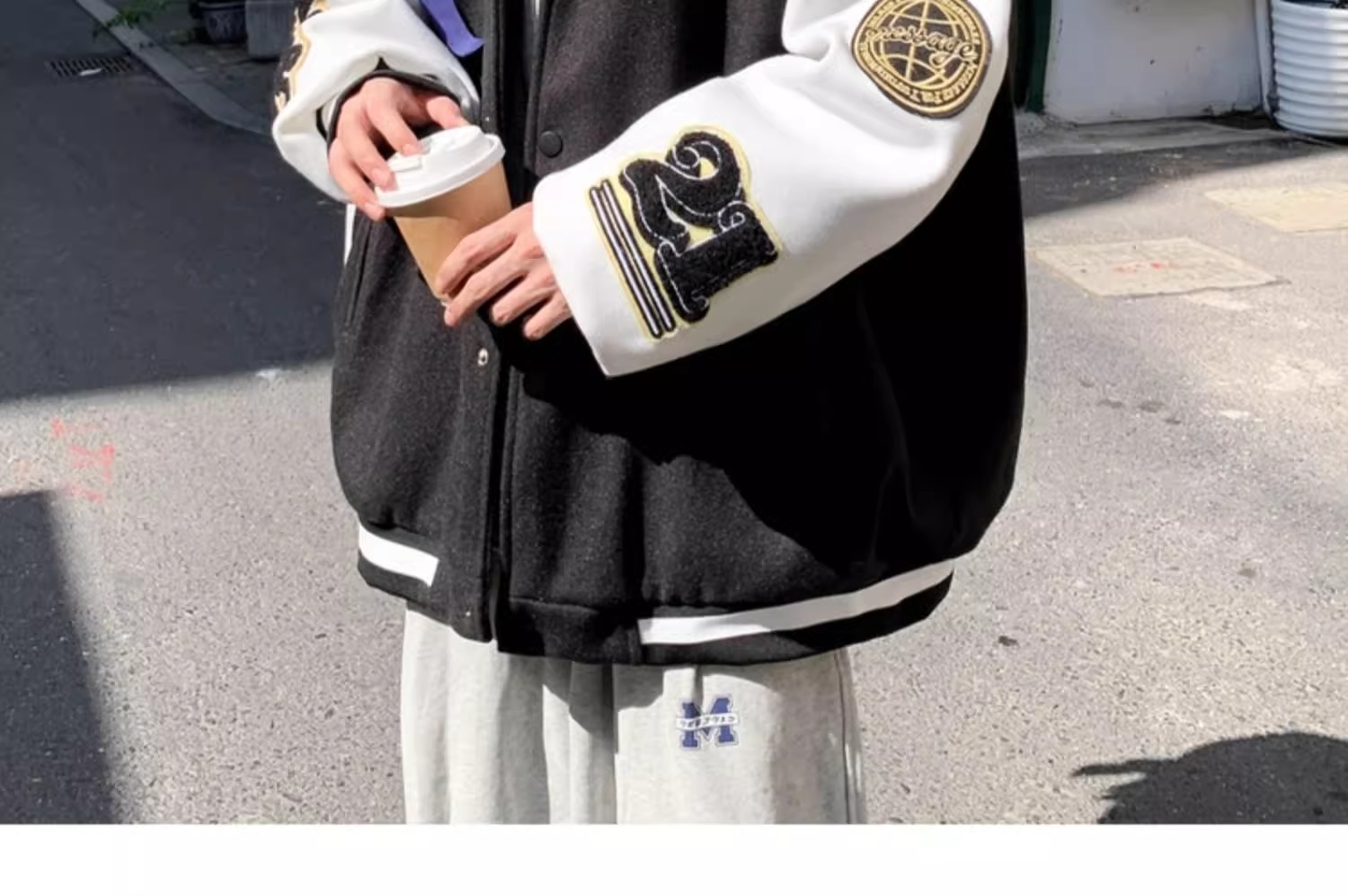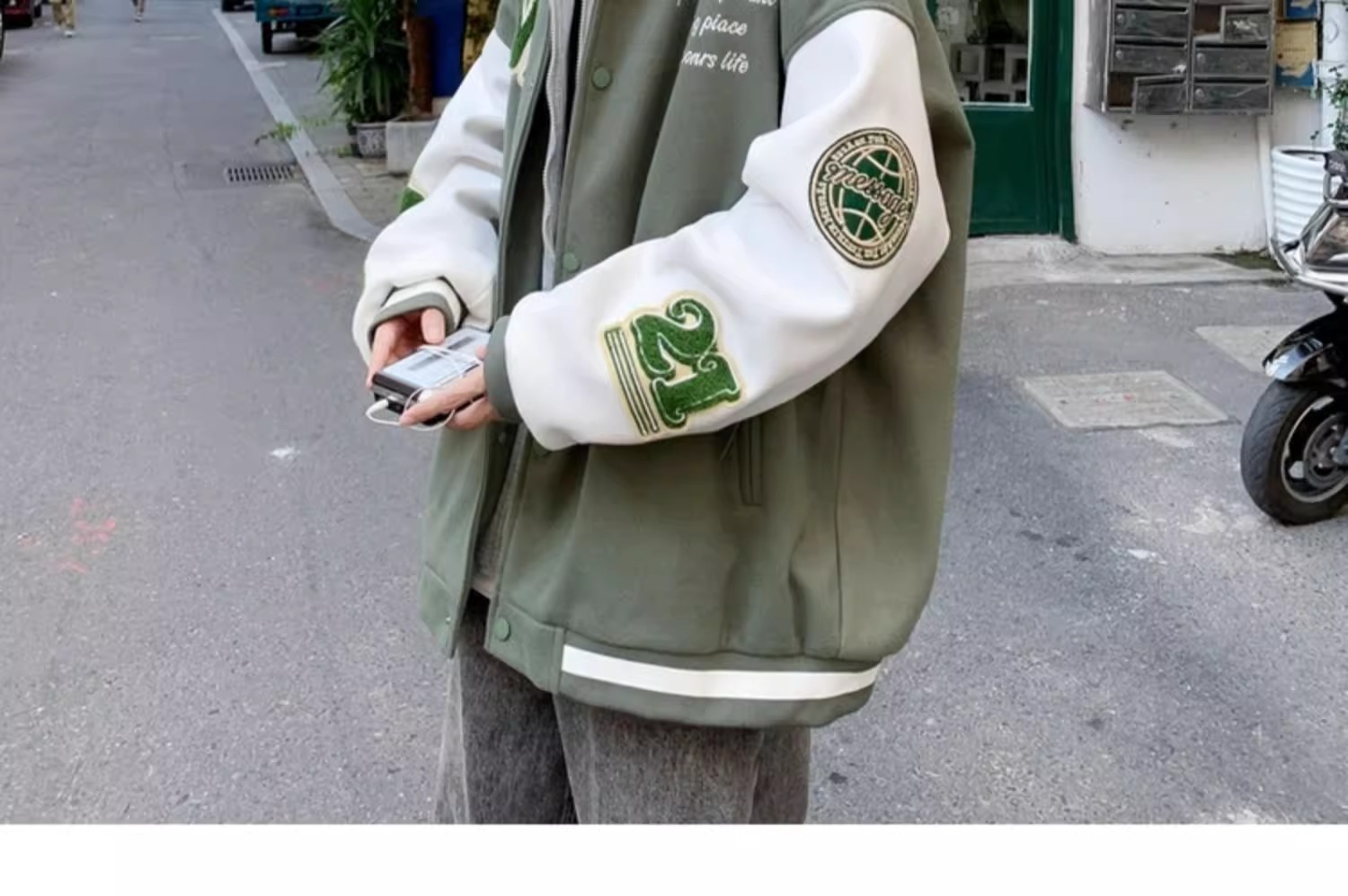 가짜 투피스 야구 유니폼 남자 코트 봄과 가을 2024 새로운 후드 자켓 미국 스타일 유행 브랜드 소년 커플 옷스토어 가기