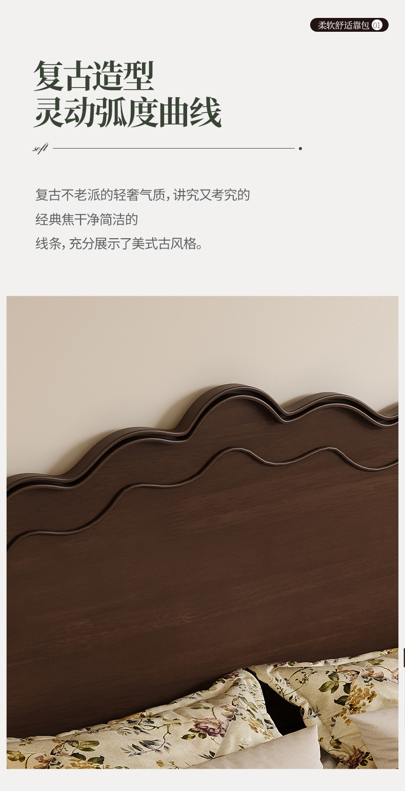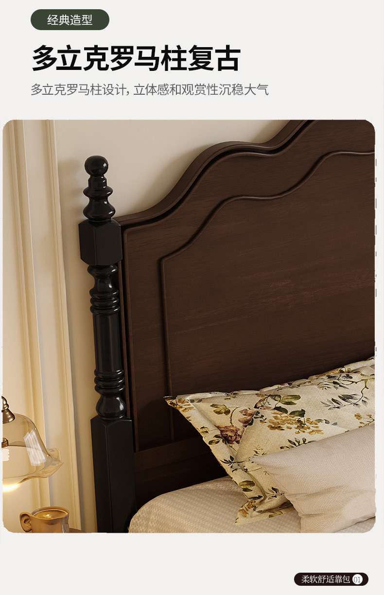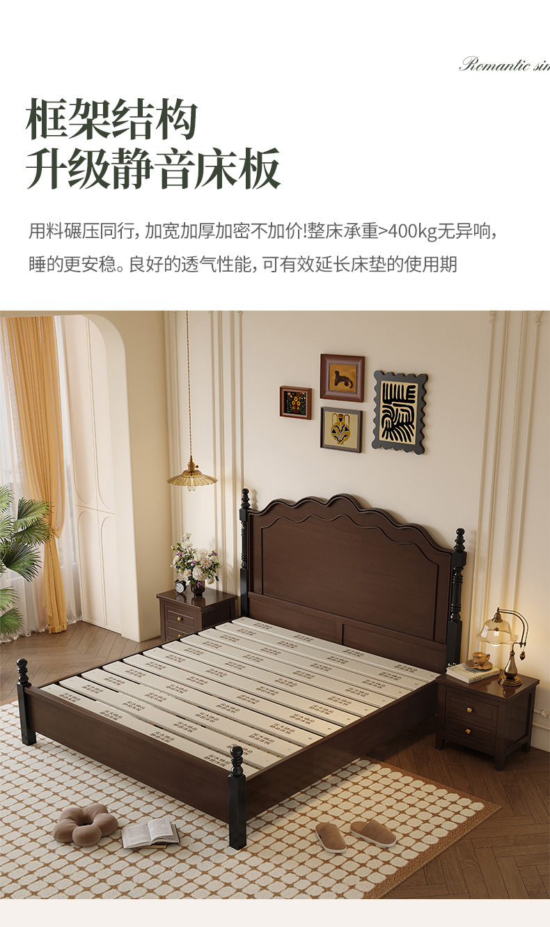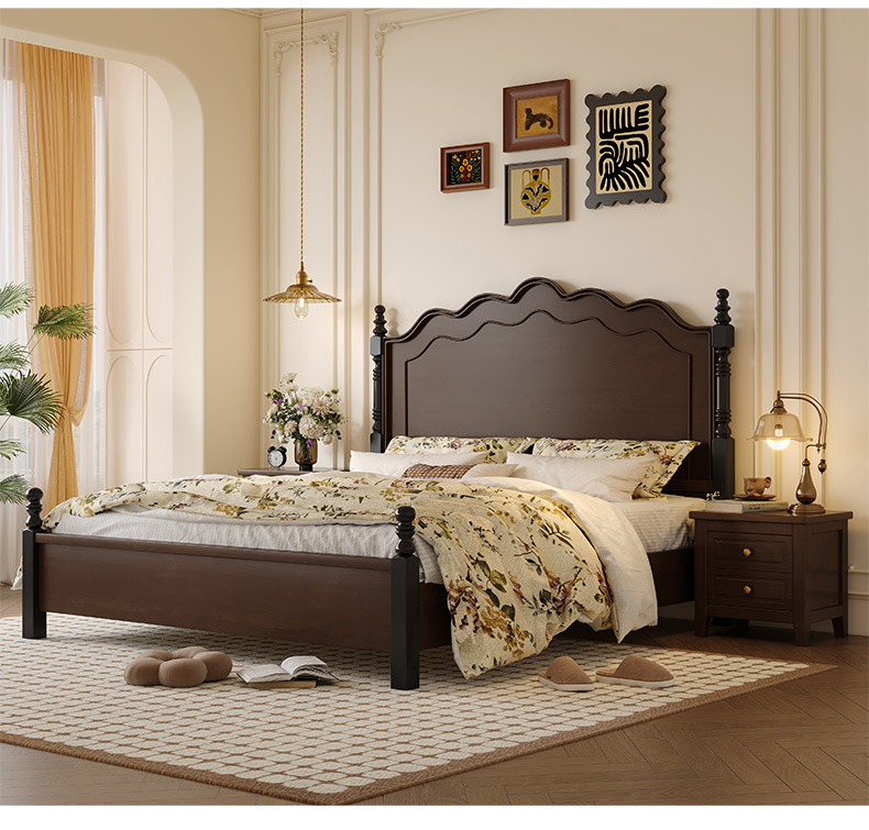 프렌치 레트로 원목 침대, 모던 심플 마스터 침실 1.5m 더블 침대, 아메리칸 침대 1.8m, 중세 스타일의 가벼운 럭셔리 가구스토어 가기