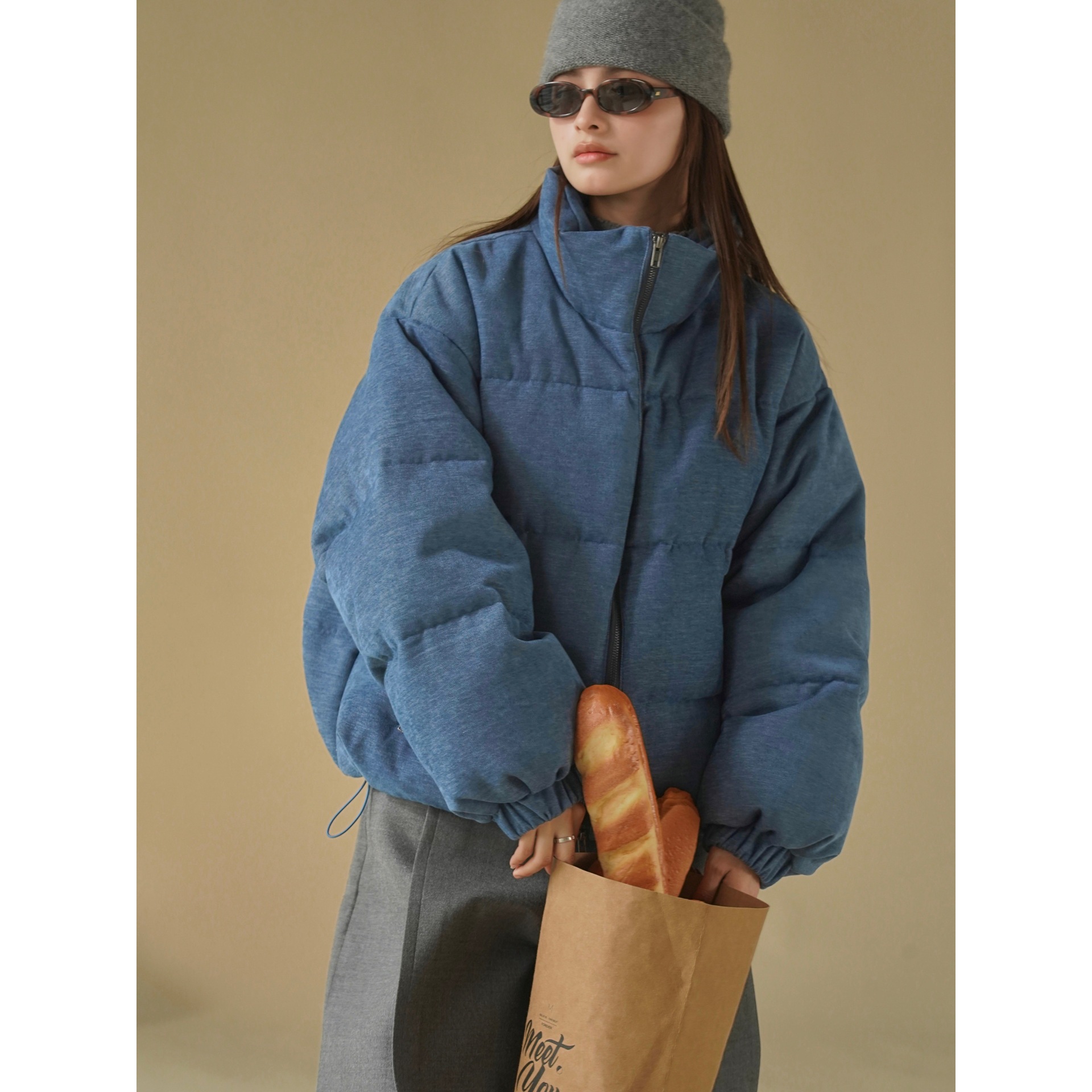 Lvu 겨울 새로운 한국 스타일 유행 높은 목 프로필 짧은 빵 다운 재킷 푹신한 따뜻한 느슨한 캐주얼 외부스토어 가기