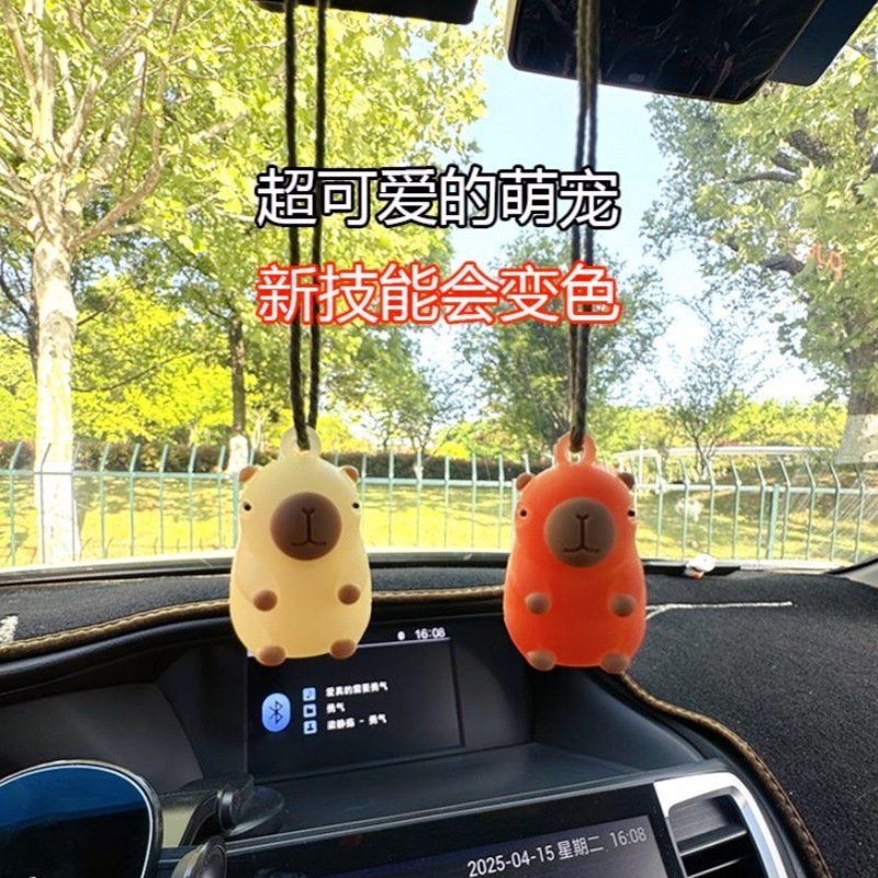 자동차에 장착된 색이 변하는 오리 펜던트, 자외선에 노출되면 색이 변하는 카피바라, 재미있는 장난감 오리 열쇠고리