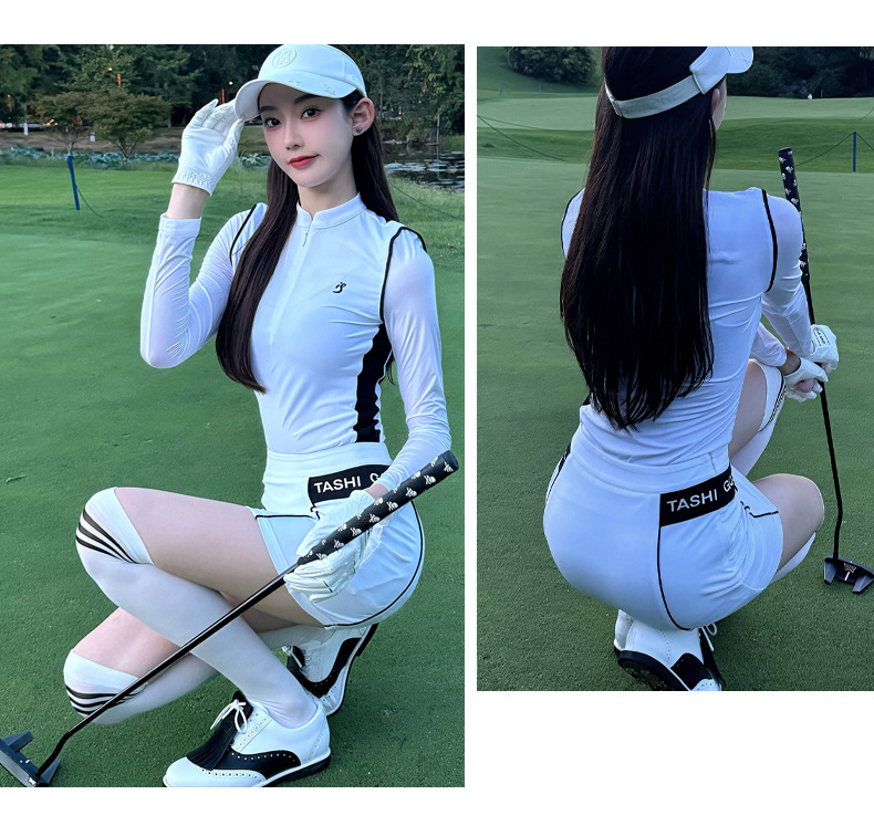 TASHI GOLF 가을 기질 여성 속건성 자외선 차단제 긴팔 골프 의류 여성 상의 힙 커버 짧은 스커트