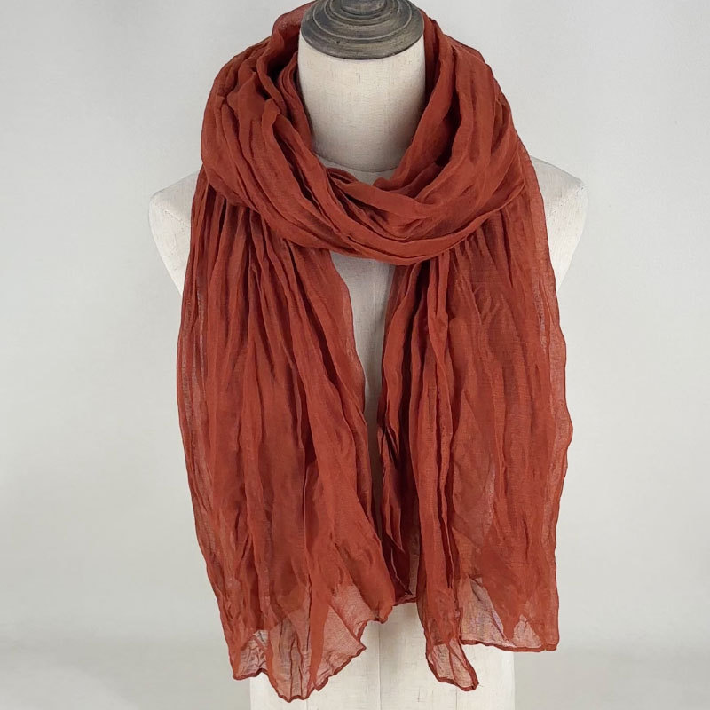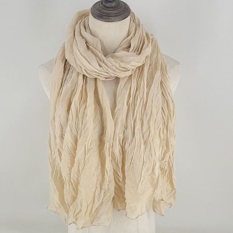 수출 뜨거운 판매 솔리드 컬러 크럼플 스카프 여성 예술 레저 코튼 및 리넨 스카프 올매치 넥 보호 스카프 선스크린 스카프스토어 가기