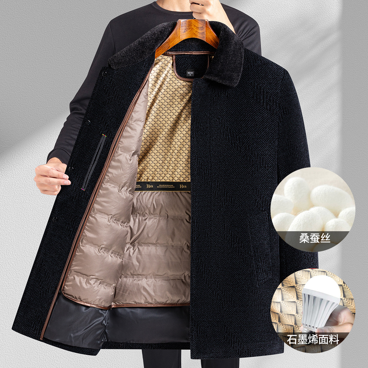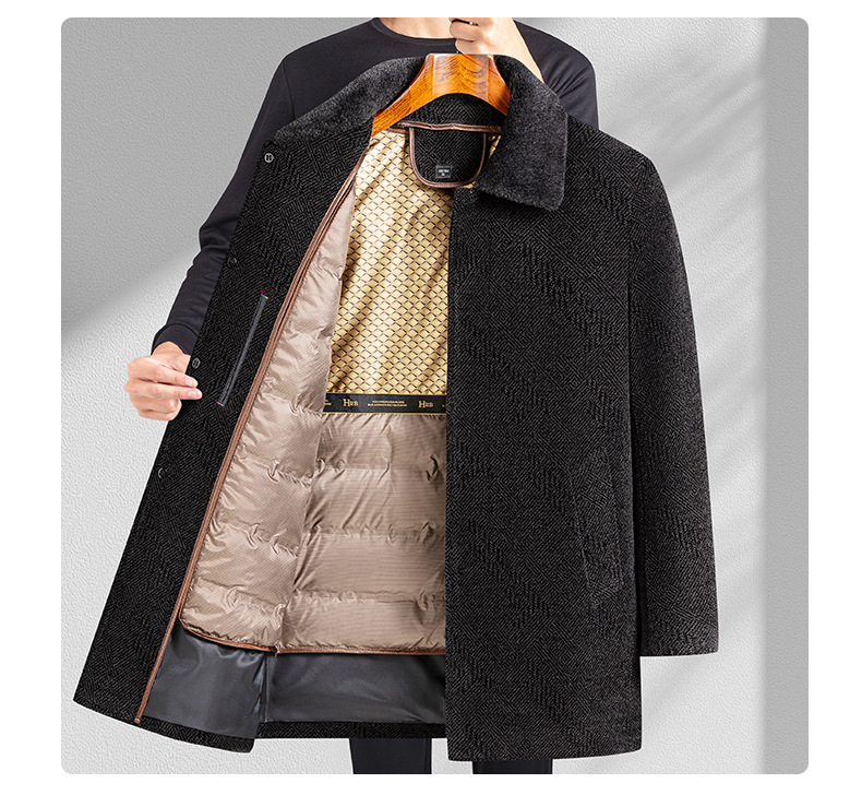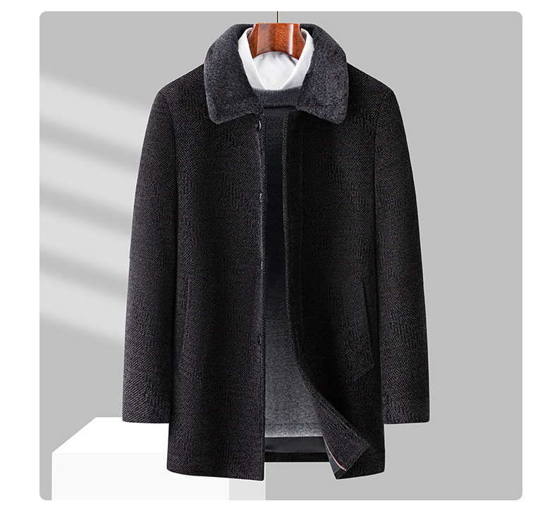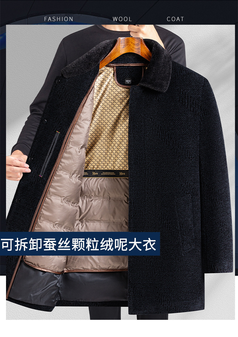 남자 비즈니스 Chenille 모직 코트 하이 엔드 뽕나무 실크 누빔안감 아빠 겨울 코트