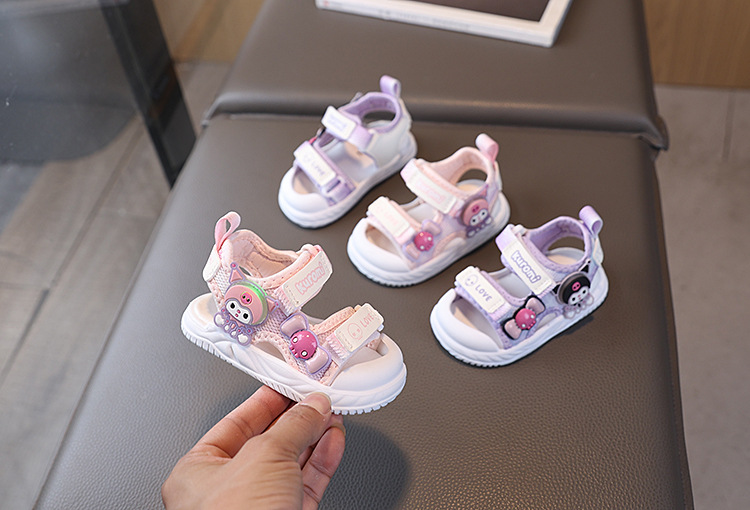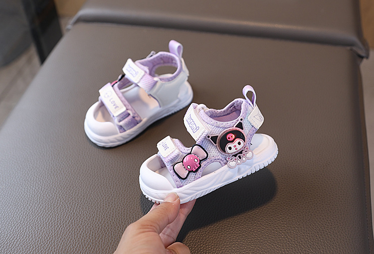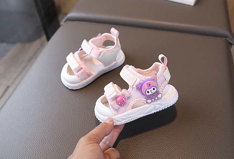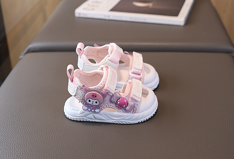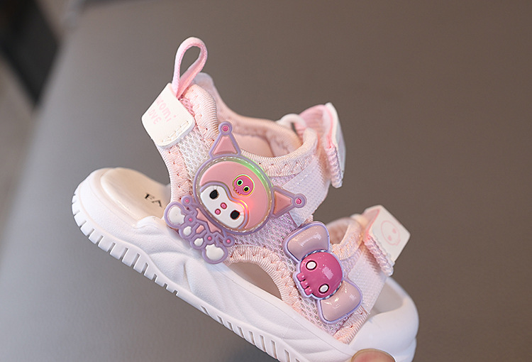 소녀 샌들 여름 새로운 여성 아기 신발 공주 샌들 만화 플래시 라이트 소프트 하단 유아 비치 신발 1-6 세