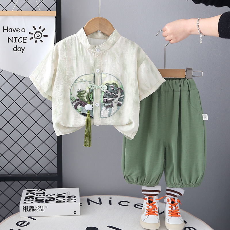 소년 '2025 여름 여름 세트 새로운 아기 중국 스타일 서양식 어린이 셔츠 한푸 반팔 투피스 세트스토어 가기