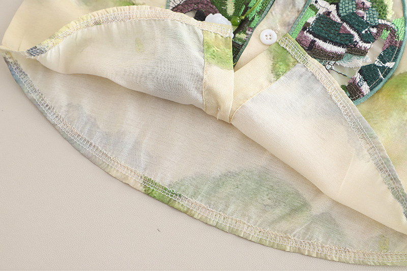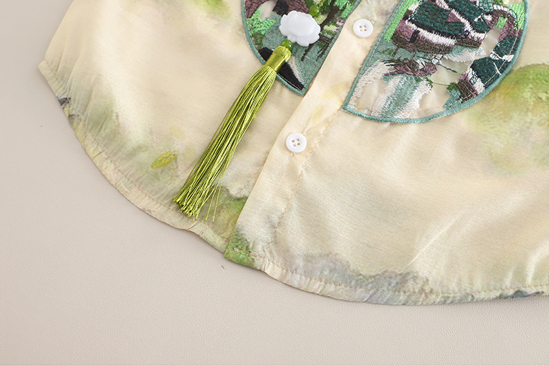• 콩 그린 민족 스타일 자수 반팔 슈트