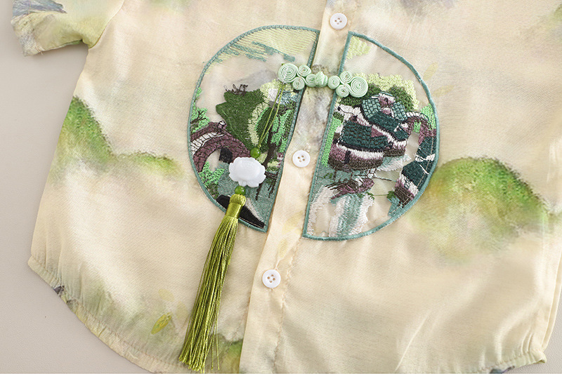 소년 '2025 여름 여름 세트 새로운 아기 중국 스타일 서양식 어린이 셔츠 한푸 반팔 투피스 세트