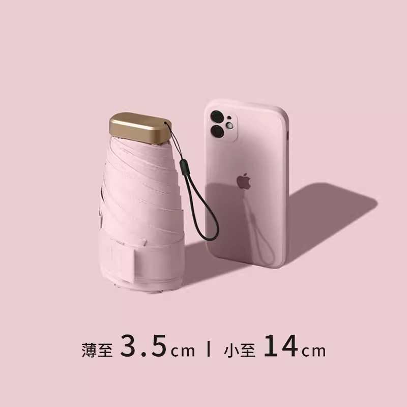 • 포켓 우산 6본 미니 우산 로즈 핑크 자외선 차단제 두꺼운 비닐