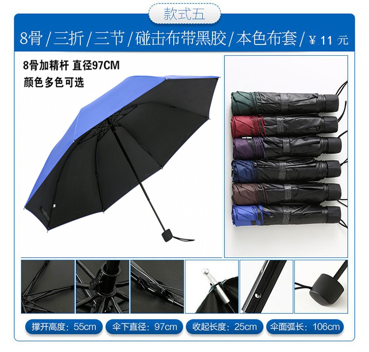 • 포켓 우산 6본 미니 우산 조용한 파란색 자외선 차단제 두꺼운 비닐