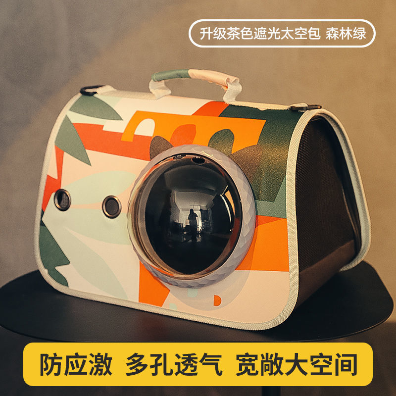 • 업그레이드된 브라운 렌즈 후드 우주 캡슐 고양이 가방 - 목가적인 녹색 잎