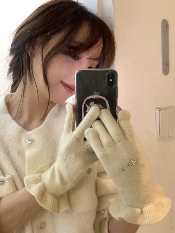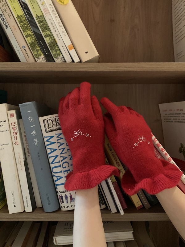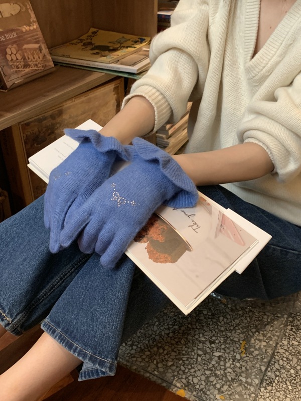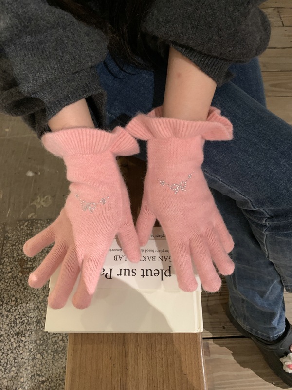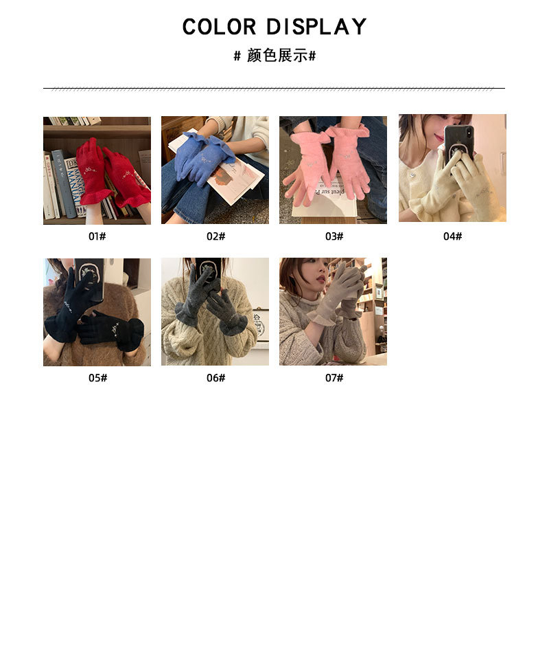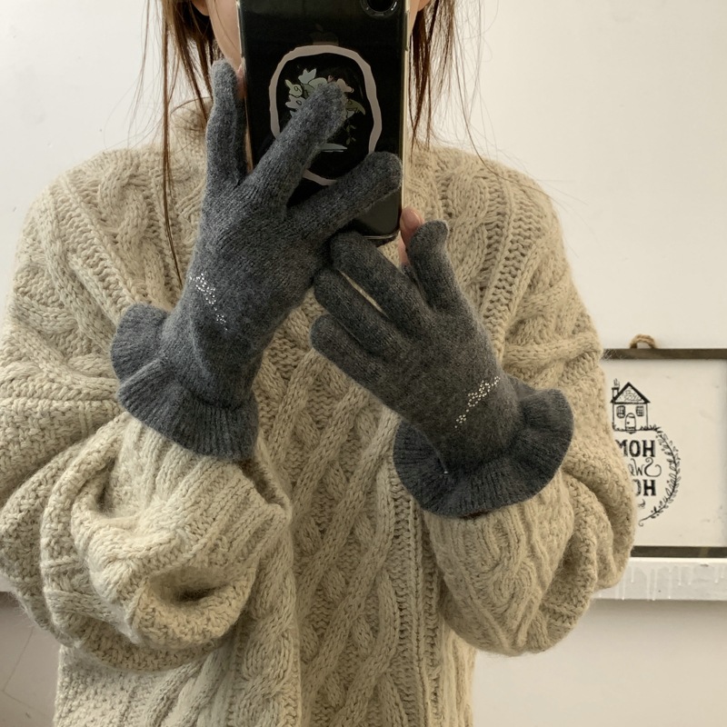 단색 손가락 장갑 꽃 봉오리 뜨거운 시추 장갑 겨울 두꺼운 터치 스크린 재생 휴대 전화 방풍 따뜻한 장갑