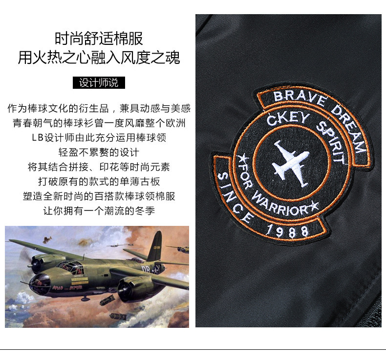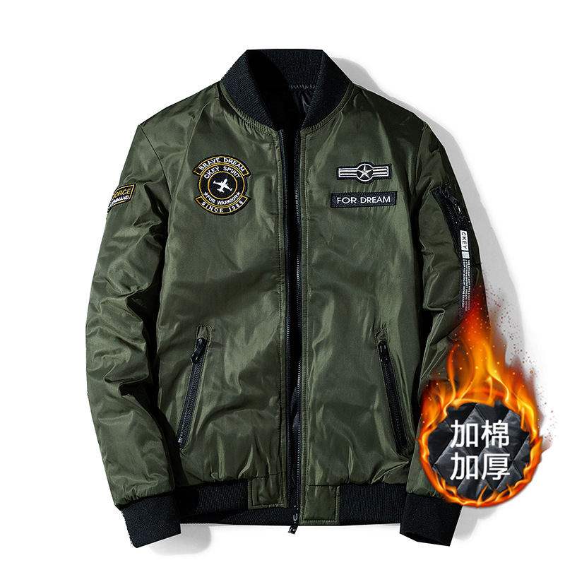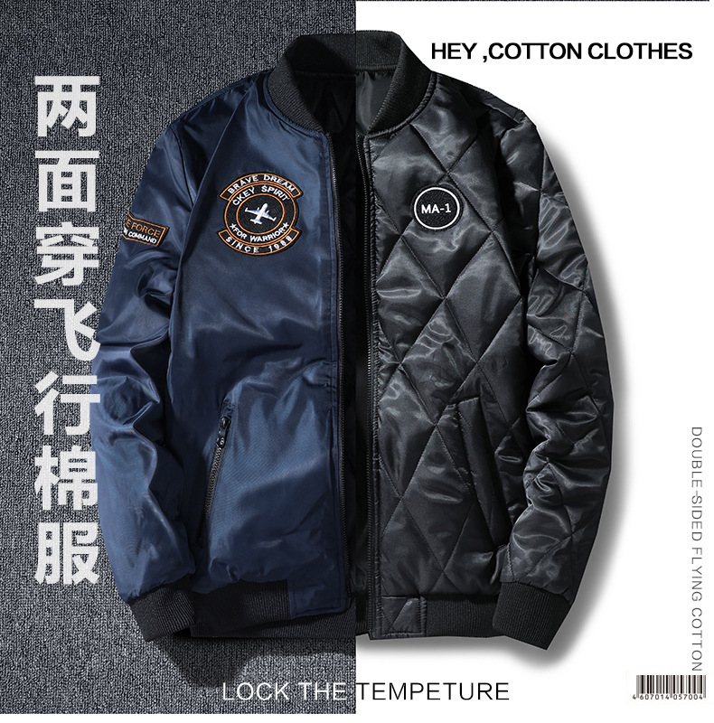 국경 간 가을과 겨울 남자 플러스 사이즈 야외 캐주얼 비행 재킷 남자 자수 야구 세트 느슨한 작업복 면화 패딩 재킷