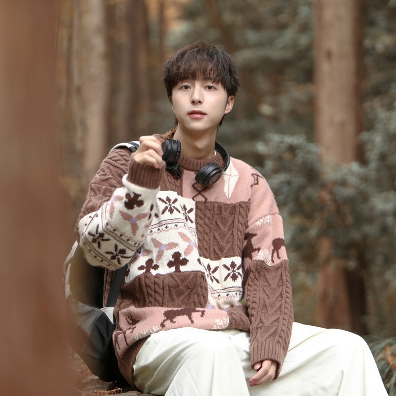 거리 분위기 커플 스웨터 오버 사이즈 게으른 바람 BF 스웨터 가을과 겨울 엘크 자카드 스웨터스토어 가기