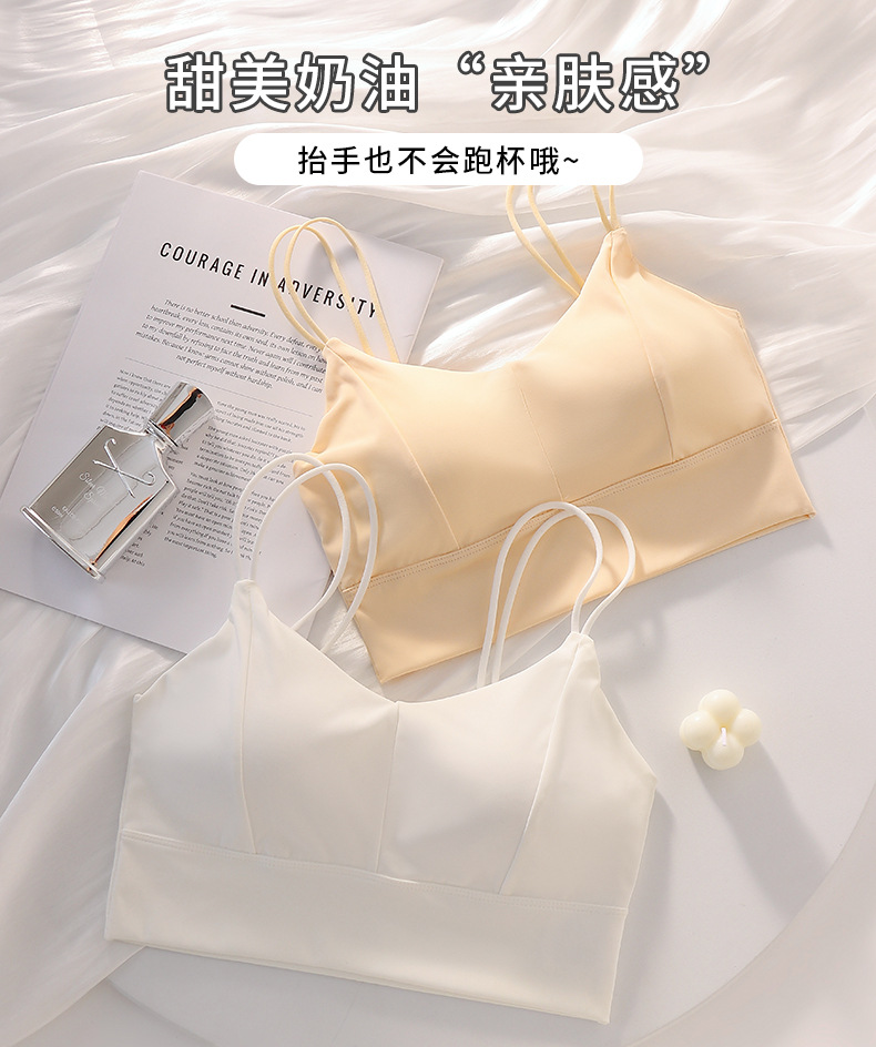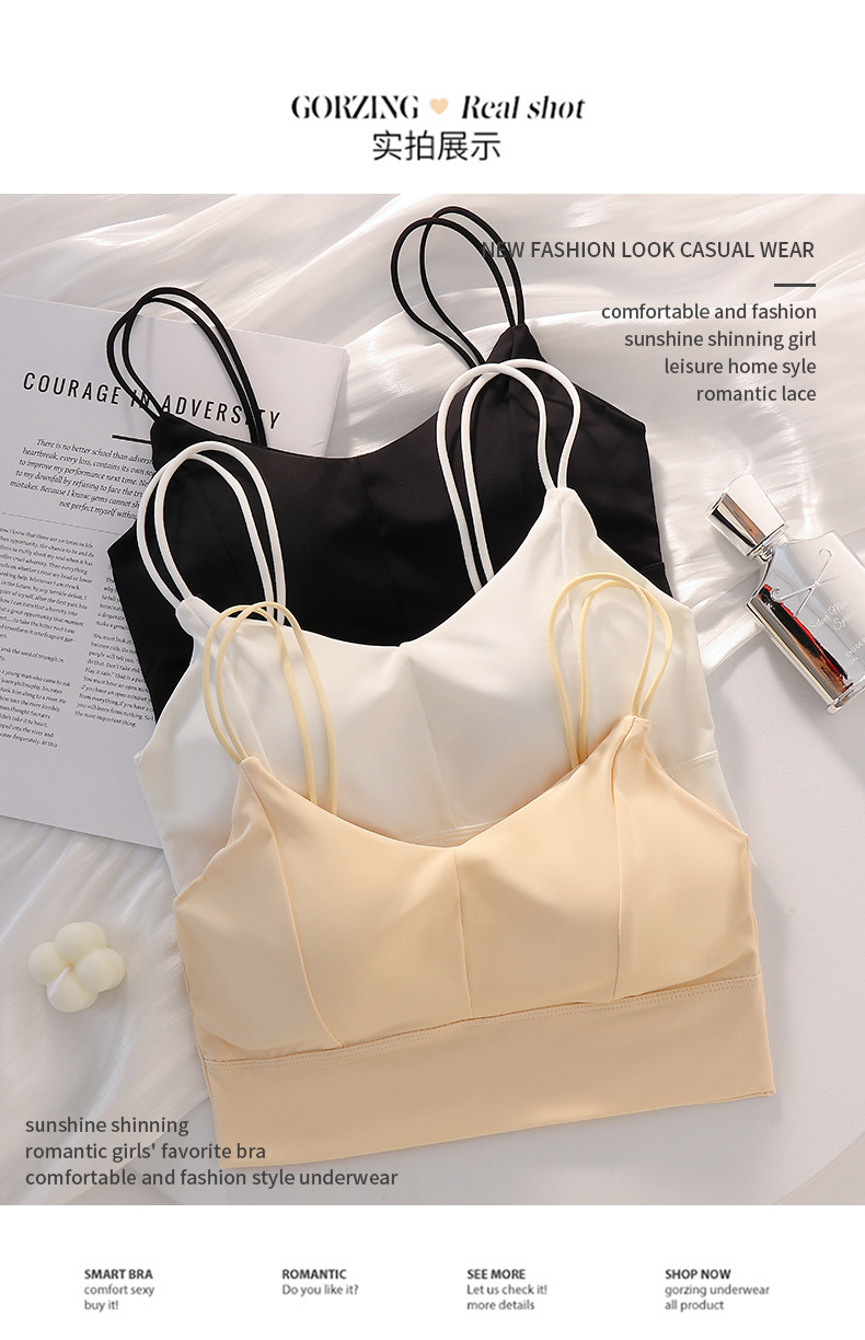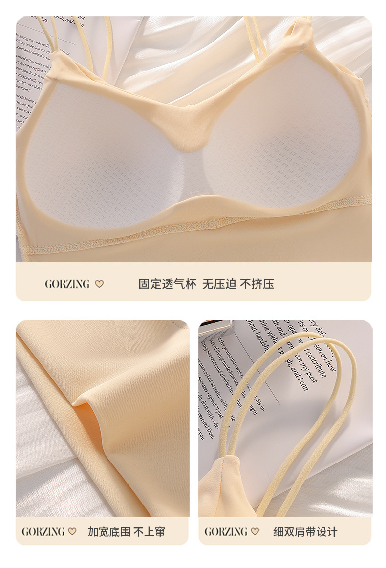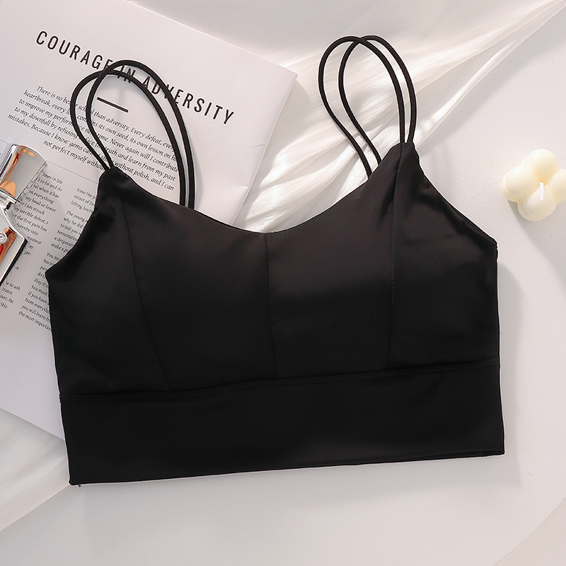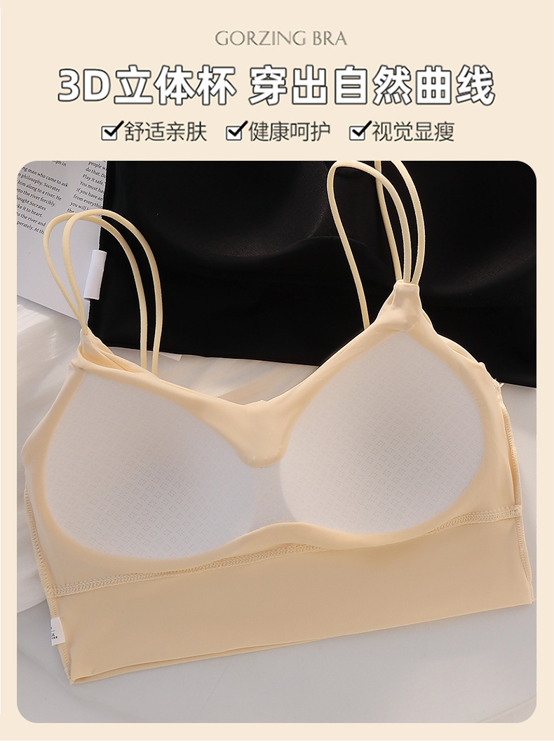 아이스 실크 심리스 아름다운 등 스트랩, 가슴 랩, 튜브탑, 스파게티 스트랩, 노와이어 베이스 레이어, 여성용 가슴 패드가 있는 스포츠 브라스토어 가기