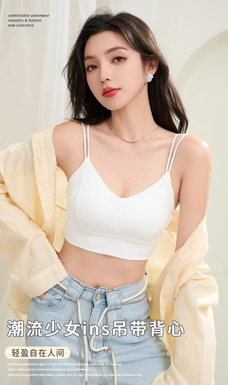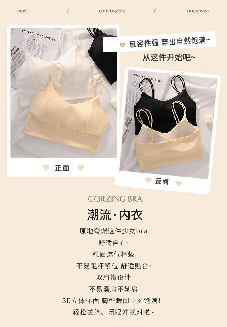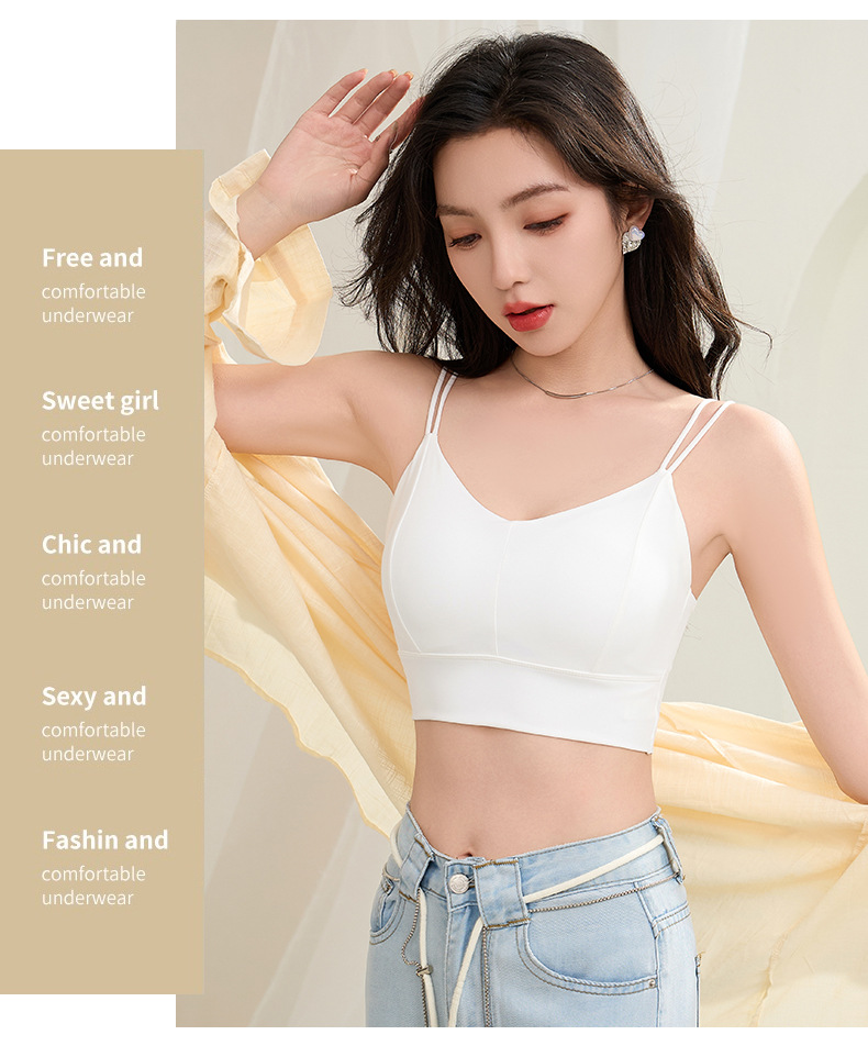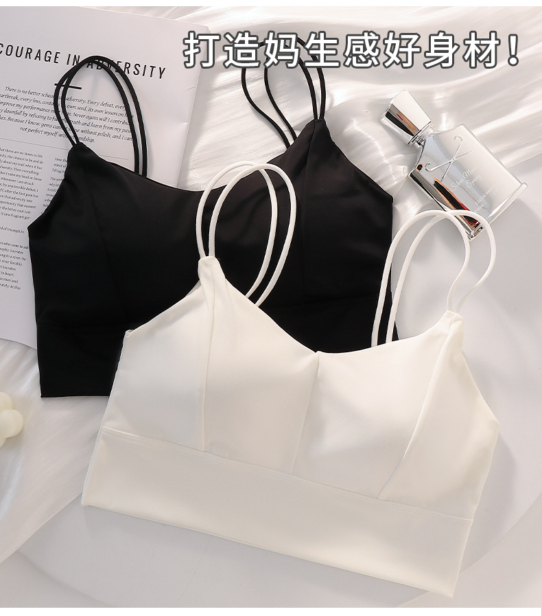 아이스 실크 심리스 아름다운 등 스트랩, 가슴 랩, 튜브탑, 스파게티 스트랩, 노와이어 베이스 레이어, 여성용 가슴 패드가 있는 스포츠 브라스토어 가기