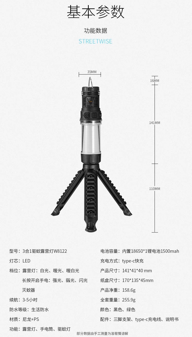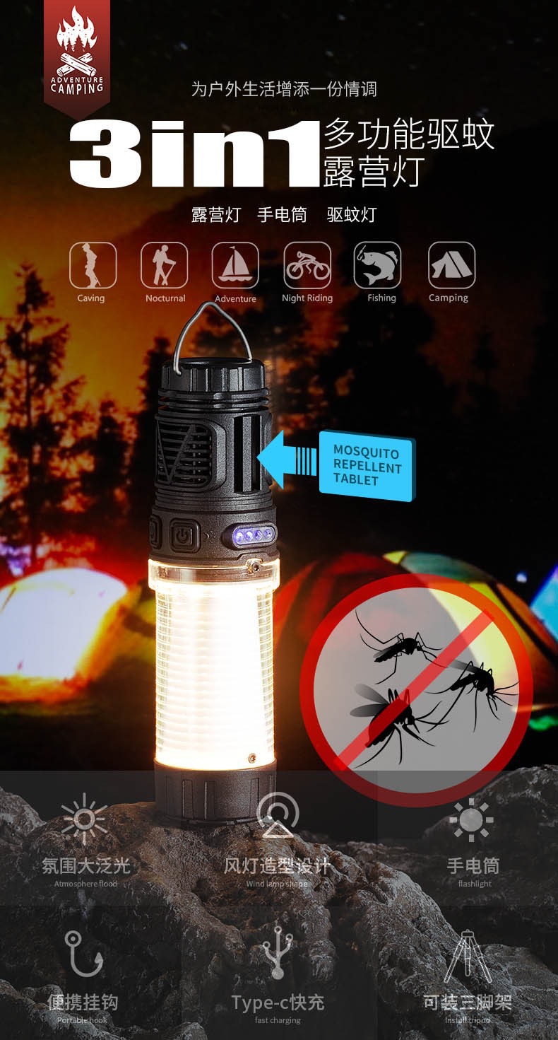국경 간 새로운 LED 모기 퇴치 캠핑 램프 야외 조명 손전등 다기능 긴 지구력 텐트 캠핑 램프스토어 가기