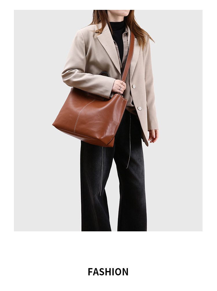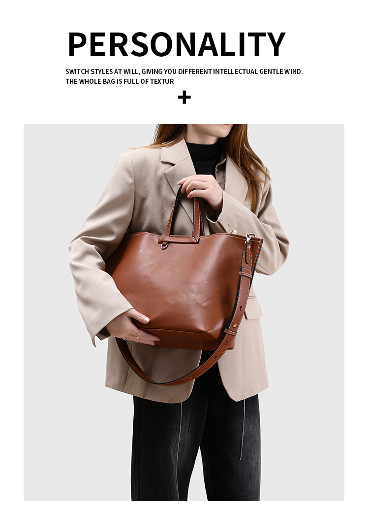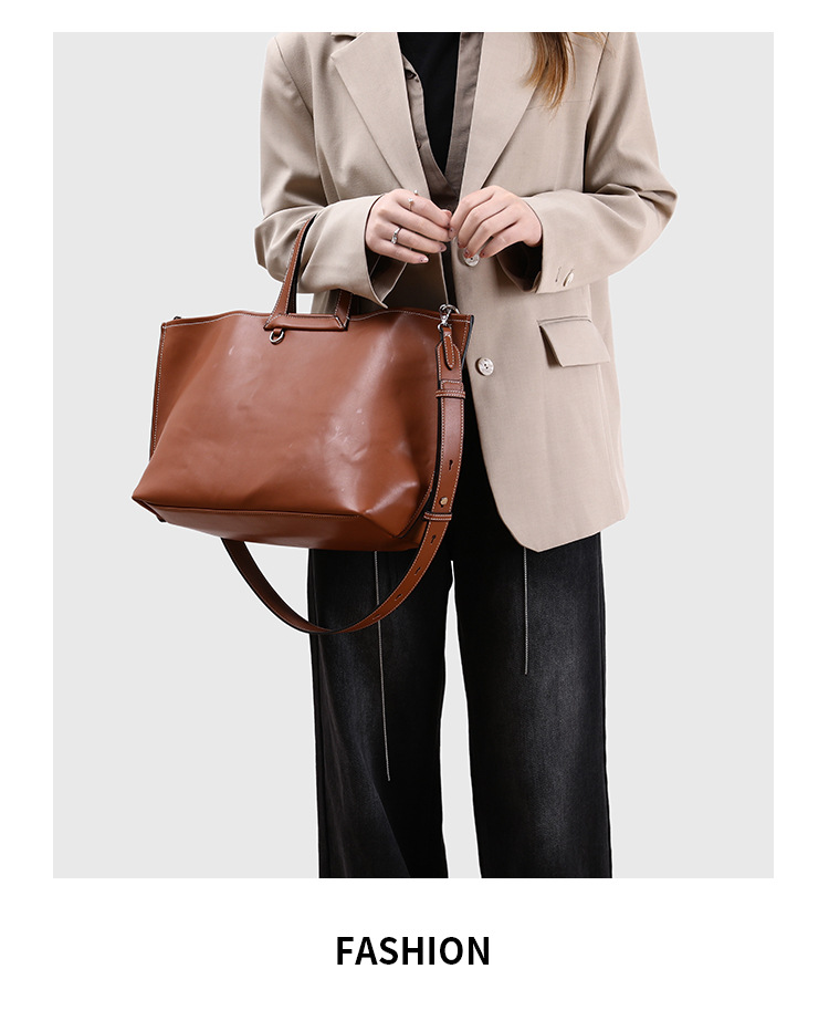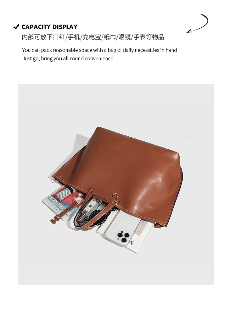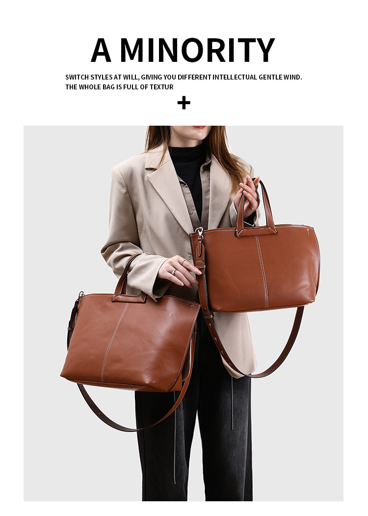 2025 새로운 부드러운 가죽 질감 접이식 귀 가방 다목적 휴대용 어깨 크로스 바디 가방 대용량 컴퓨터 가방 토트 백 유행스토어 가기