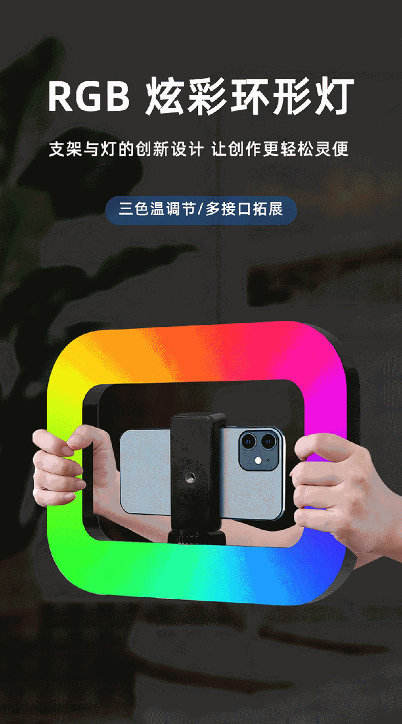 RGB 휴대용 링 라이트 휴대용 충전식 토끼 케이지 사진 라이브 방송 필 라이트 휴대 전화 모바일 셀카 조명