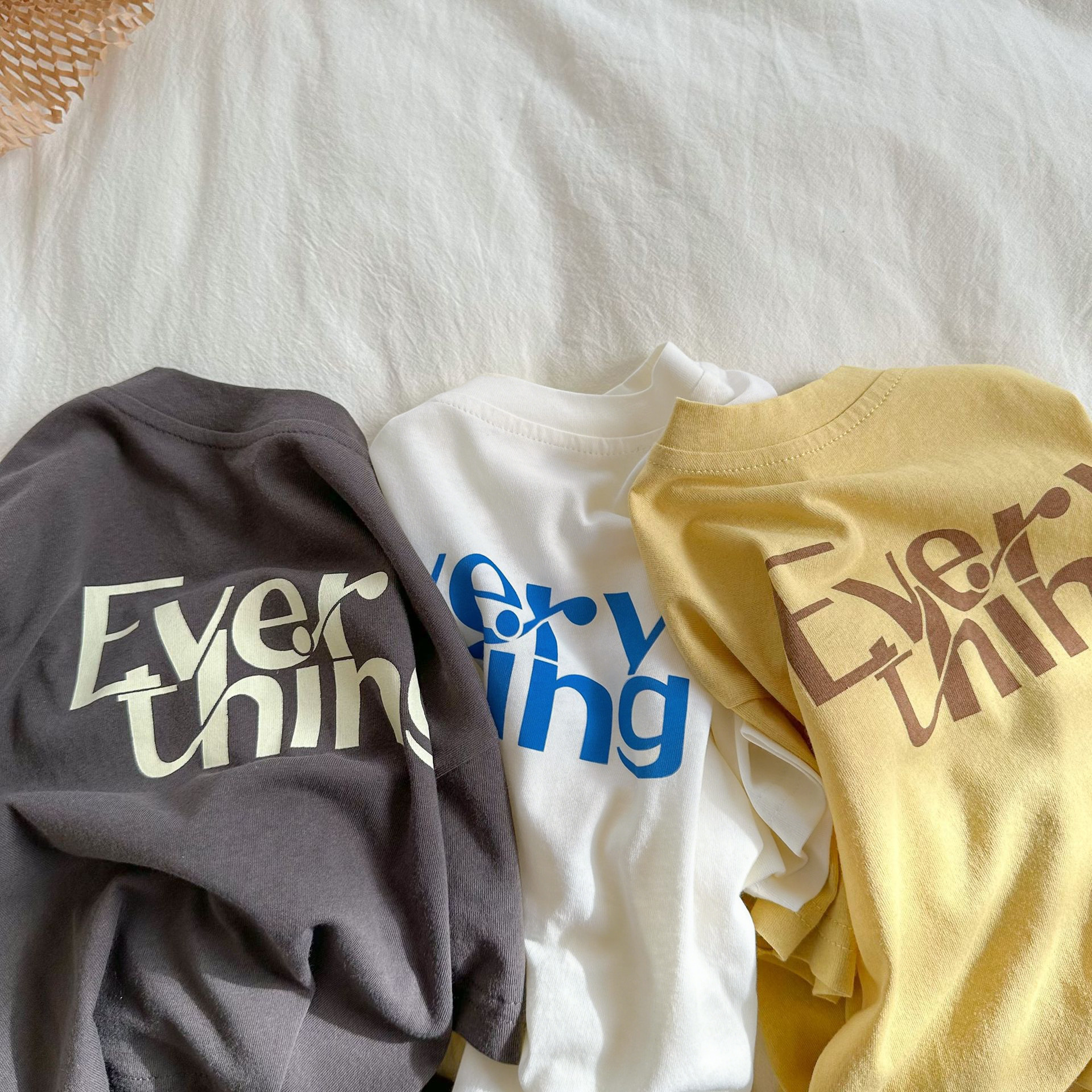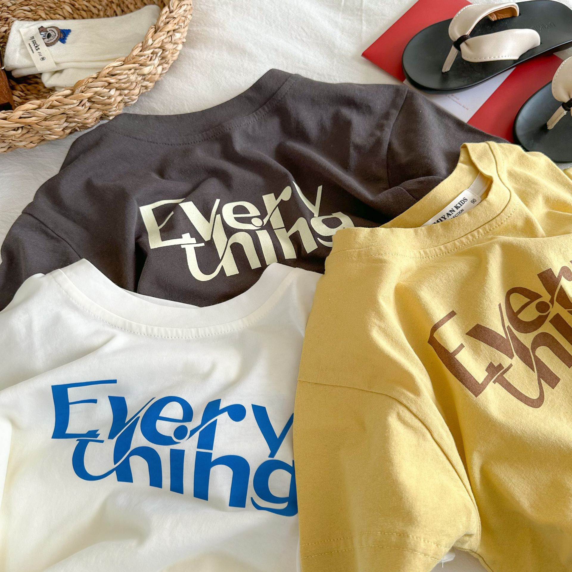 베이비 반팔 레터 프린트 소년 반팔 티셔츠 심플 2024 여름 새 스타일 소녀 여름 착용 한국 스타일 순수 코튼 티셔츠스토어 가기