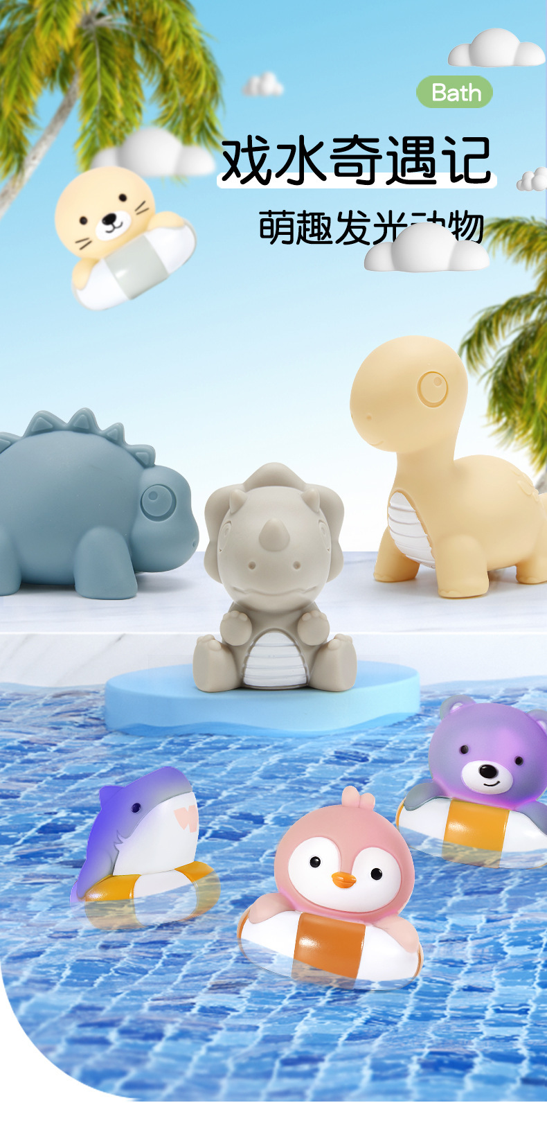아기 목욕 플래시 비닐 장난감 동물 수영 반지 터치 유도 빛나는 목욕 떠 있는 물 놀이 장난감