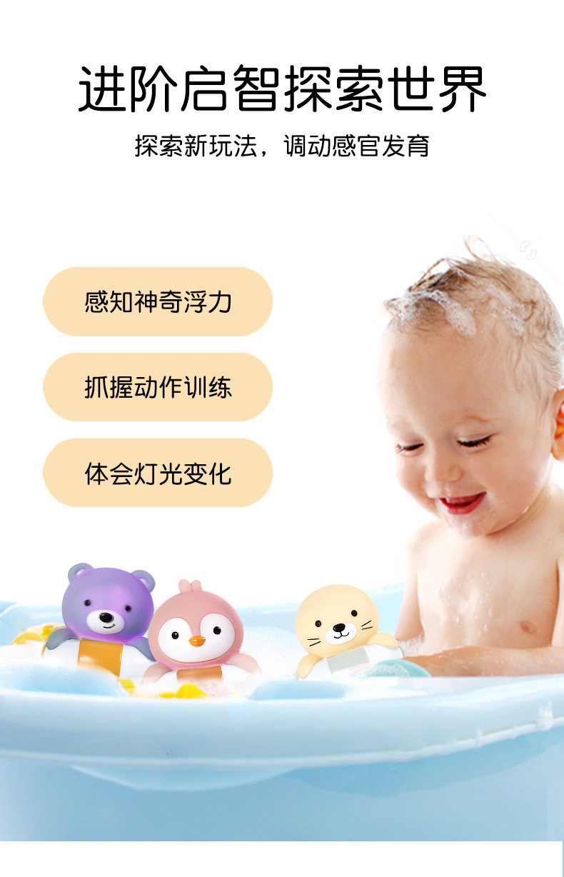 아기 목욕 플래시 비닐 장난감 동물 수영 반지 터치 유도 빛나는 목욕 떠 있는 물 놀이 장난감스토어 가기