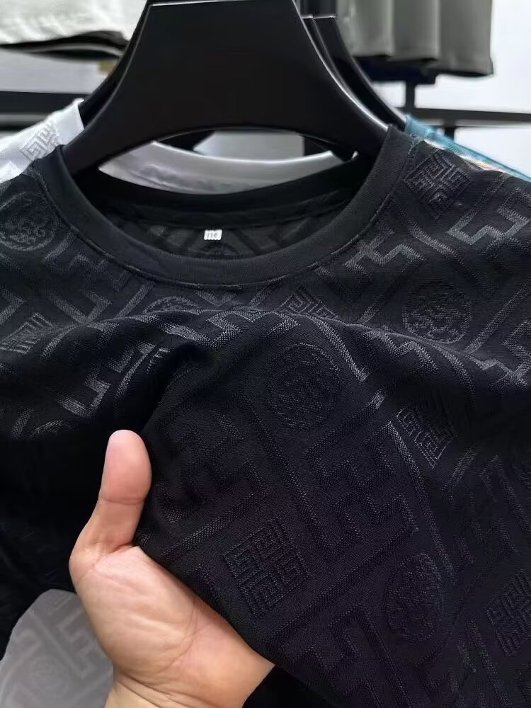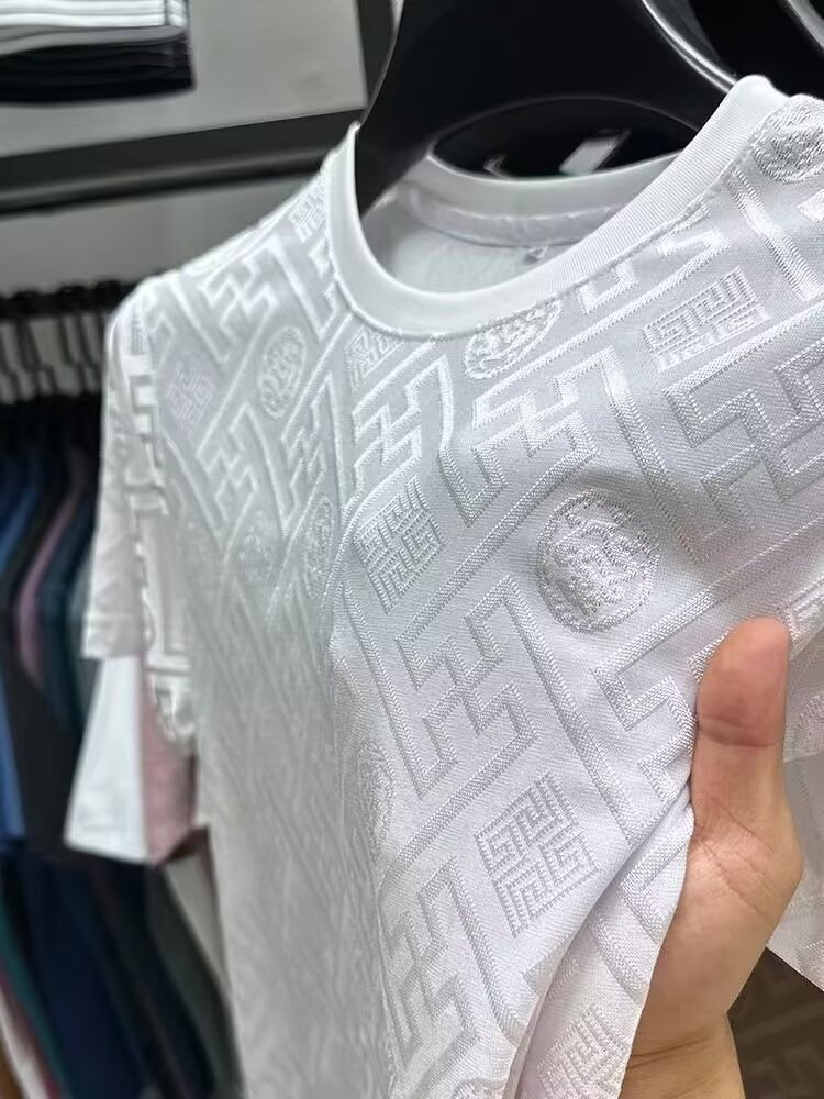 2025 남자 여름 새로운 아이스 실크 짧은 소매 프린트 티셔츠 크루 넥 멋진 느낌 남성 탑베이스 셔츠 대외 무역 T 얇은스토어 가기