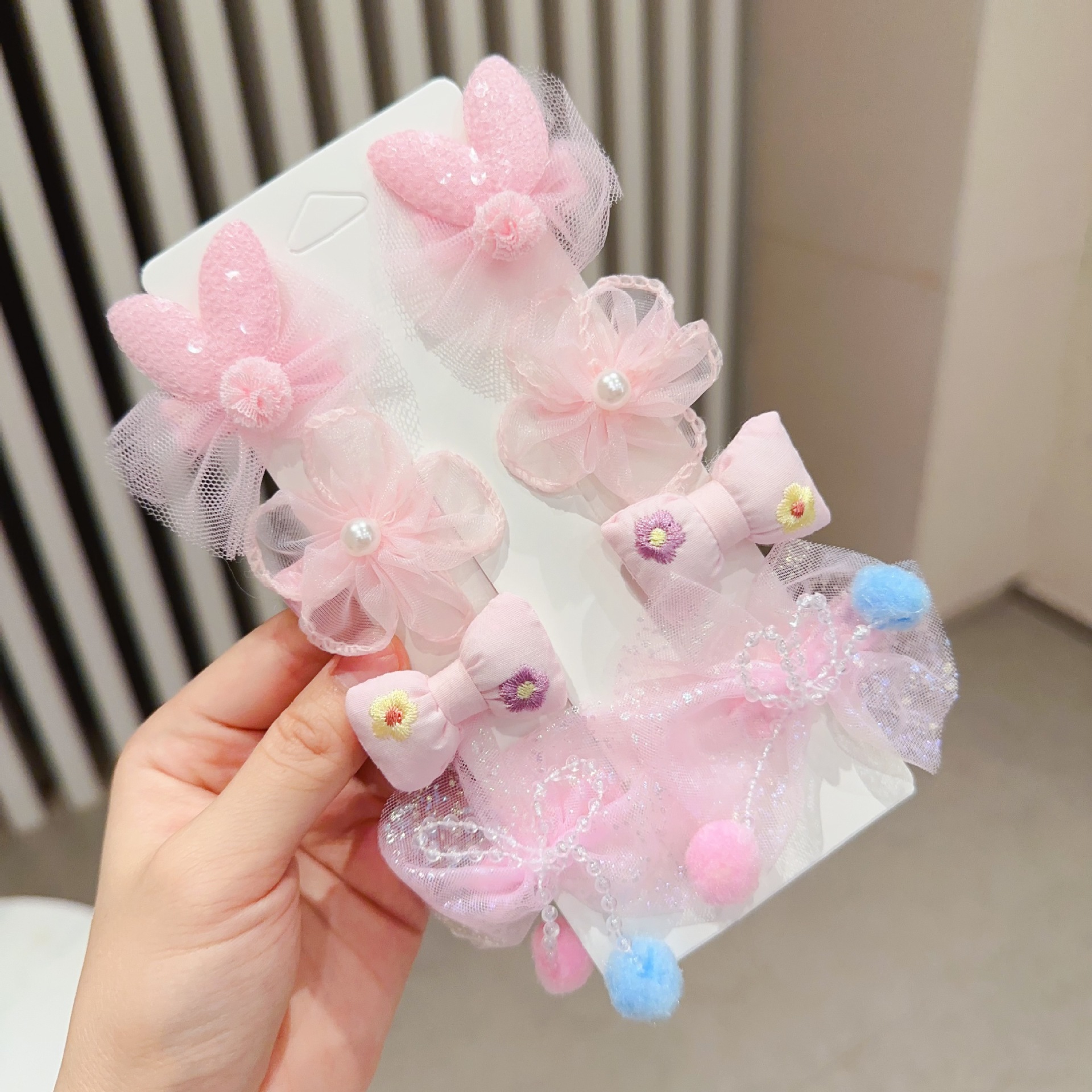 엄선된 어린이 리본 꽃 머리핀 머리 장식 아기 패브릭 레이스 앞머리 클립 소녀 공주는 머리를 아프게하지 않습니다