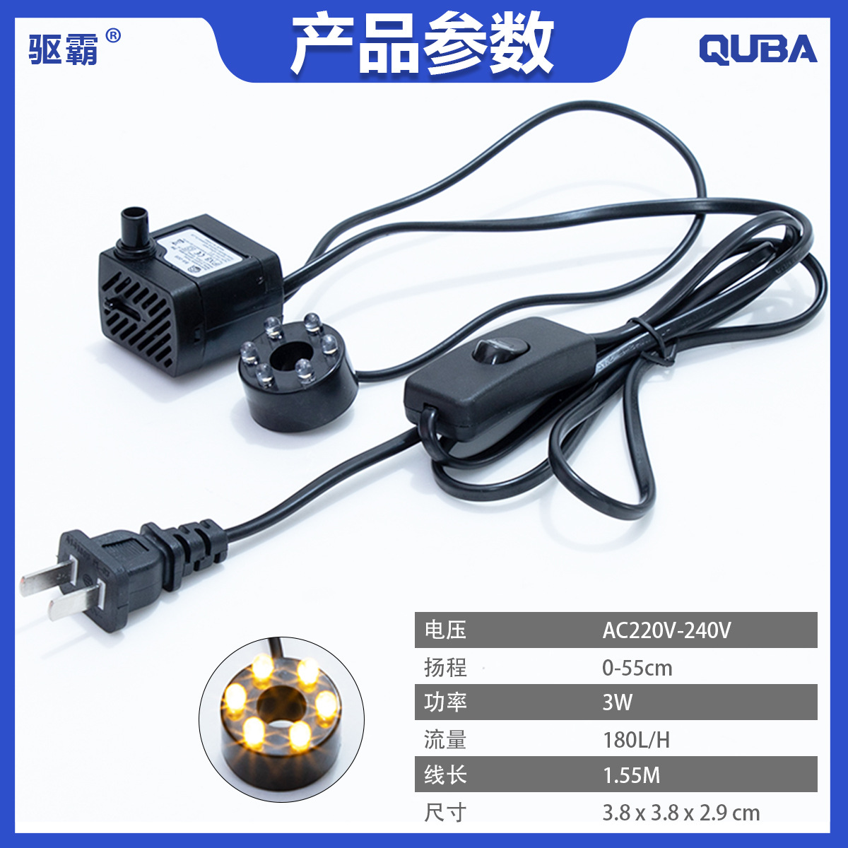 • 단색 조명 및 조절 가능한 스위치가 있는 워터 펌프
