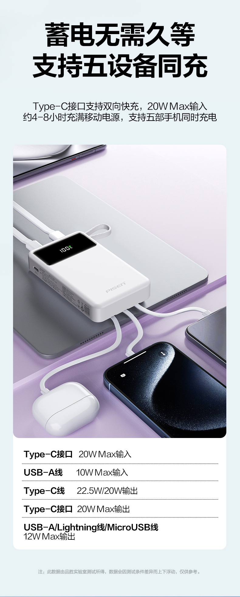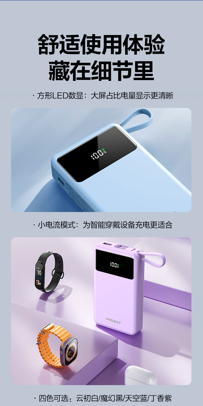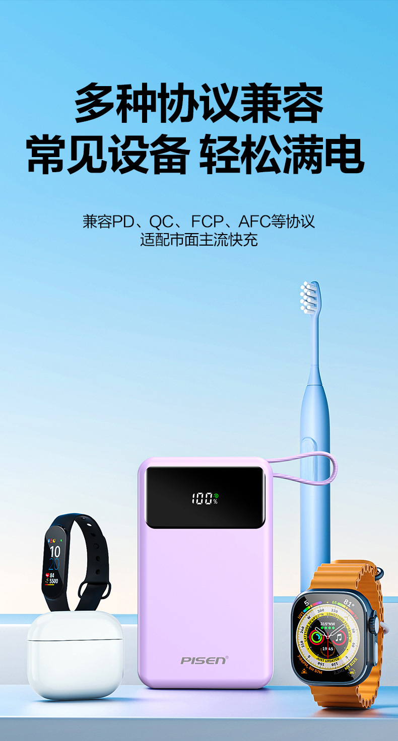 Pinsheng 22.5w에는 빠른 충전 보조베터리 10000mAh 소형 휴대용 디지털 디스플레이 휴대폰 전원 은행이 함께 제공됩니다.