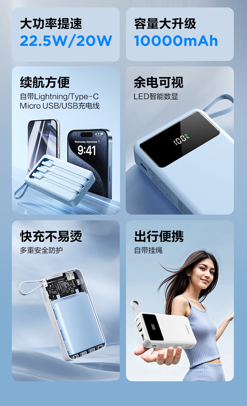 Pinsheng 22.5w에는 빠른 충전 보조베터리 10000mAh 소형 휴대용 디지털 디스플레이 휴대폰 전원 은행이 함께 제공됩니다.스토어 가기